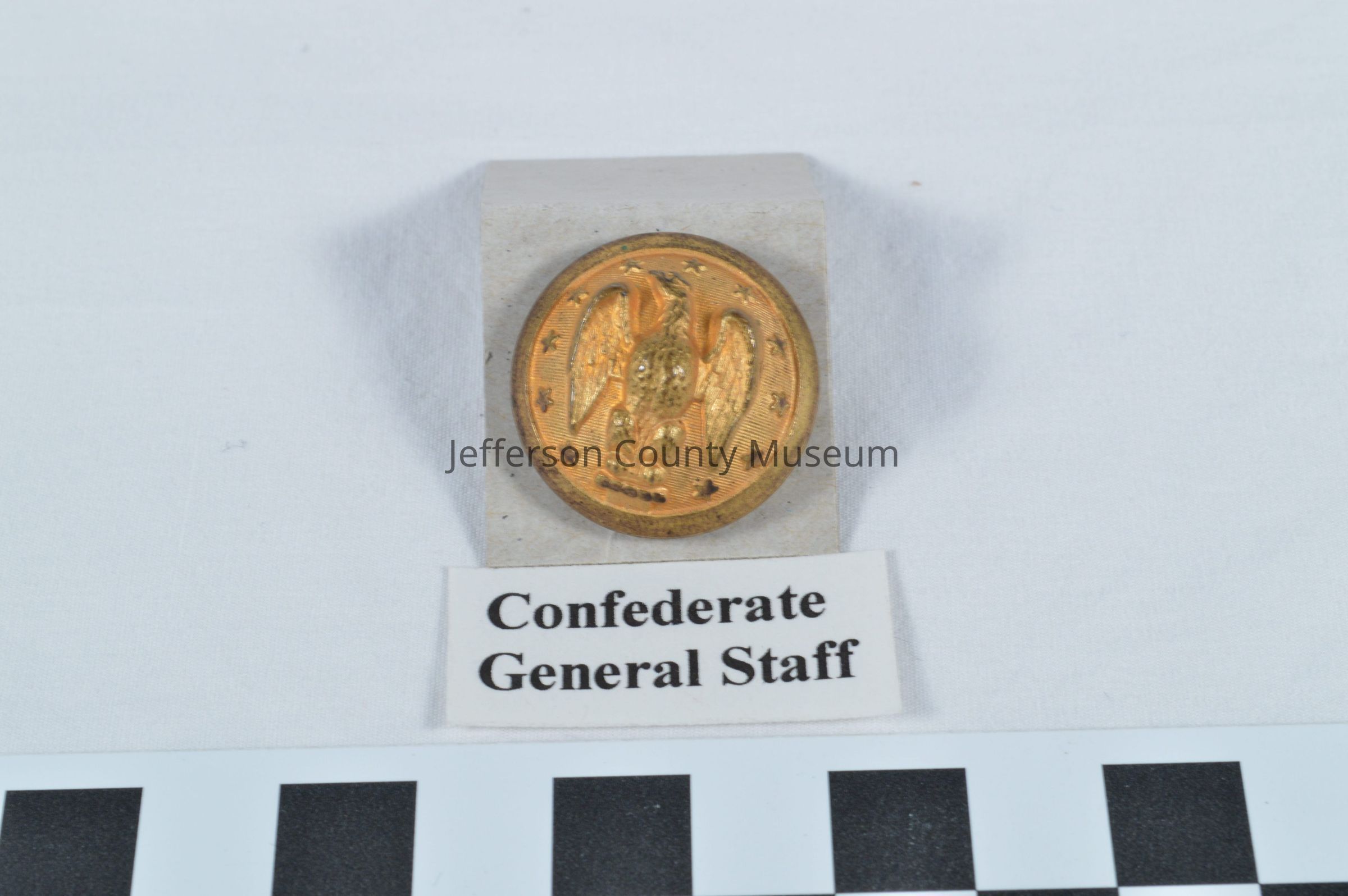 Brass Confederate general's uniform button. Eagle on front surrounded by 11 stars. On back "EXTRA RICH TREBLE GILT".Acquisition