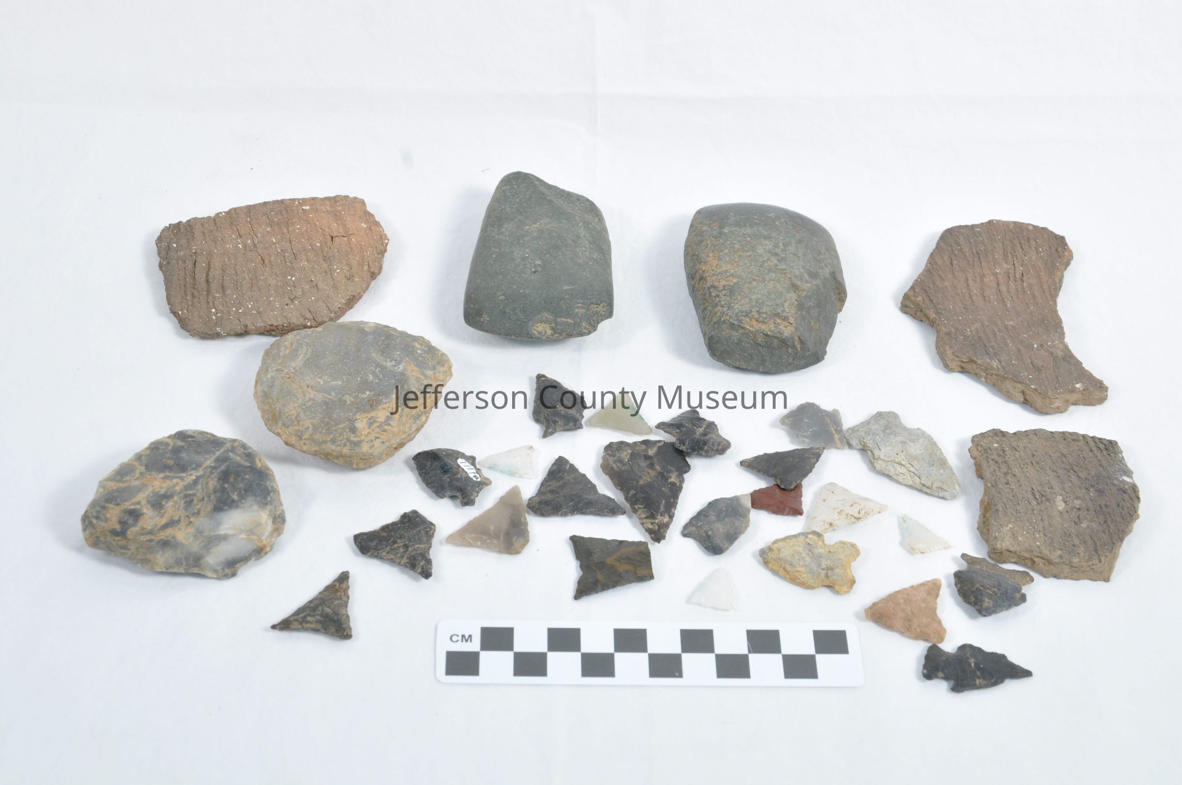Native American lithic material and pottery fragments collected primarily in Jefferson County: