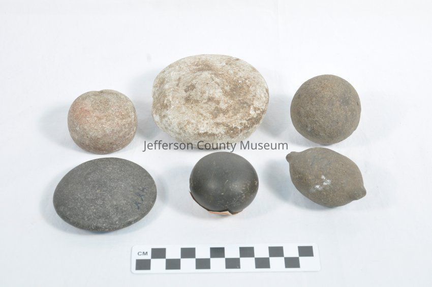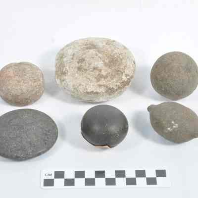 1115f: 2 stone game balls - One sandstone, one basalt (North America, Woodland Period)