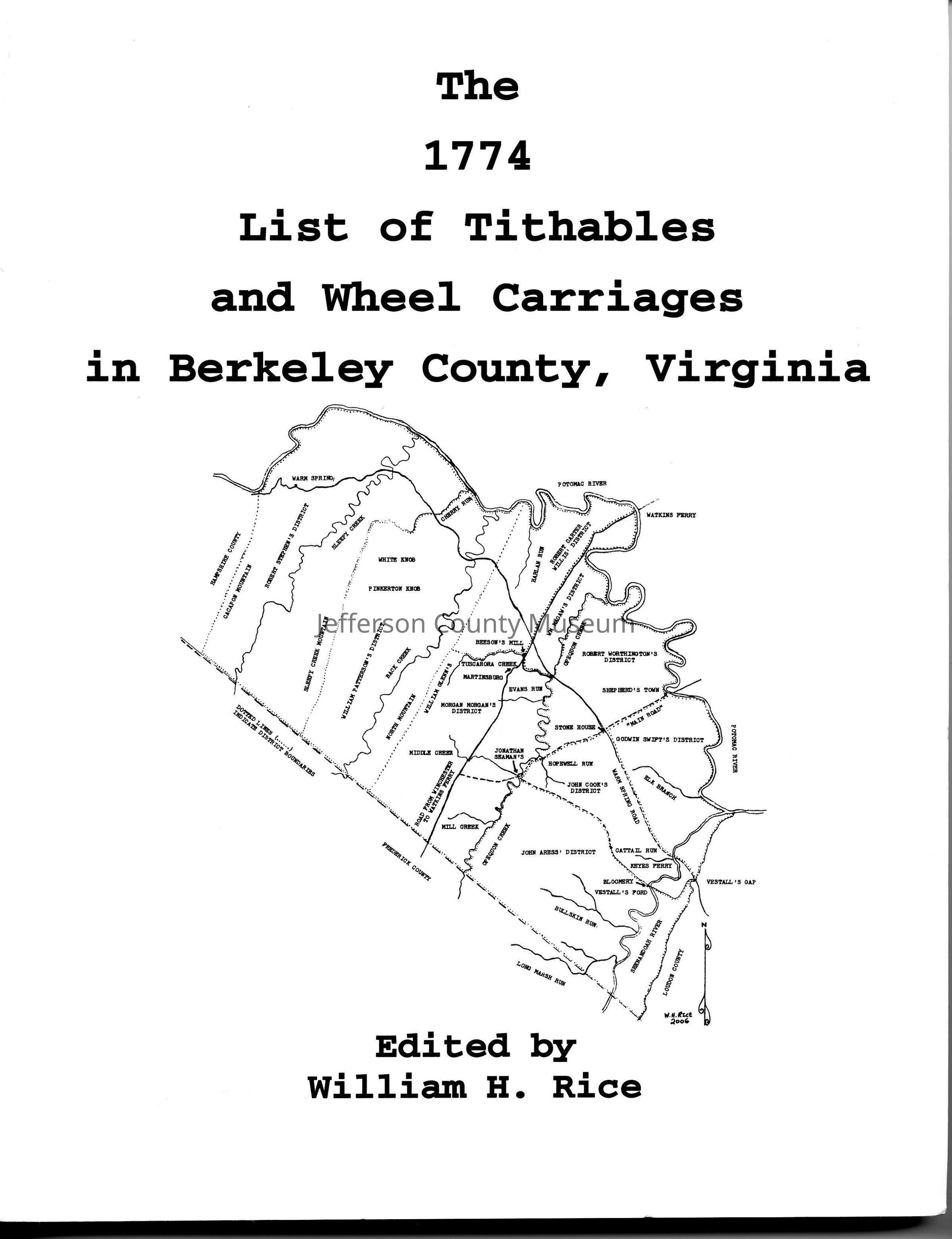 The 1774 List of Tithables and Wheel Carriages in Berkeley County, Virginia.