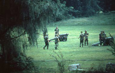 Slides 29-33: 201st Field Artillery render salute with artillery pieces