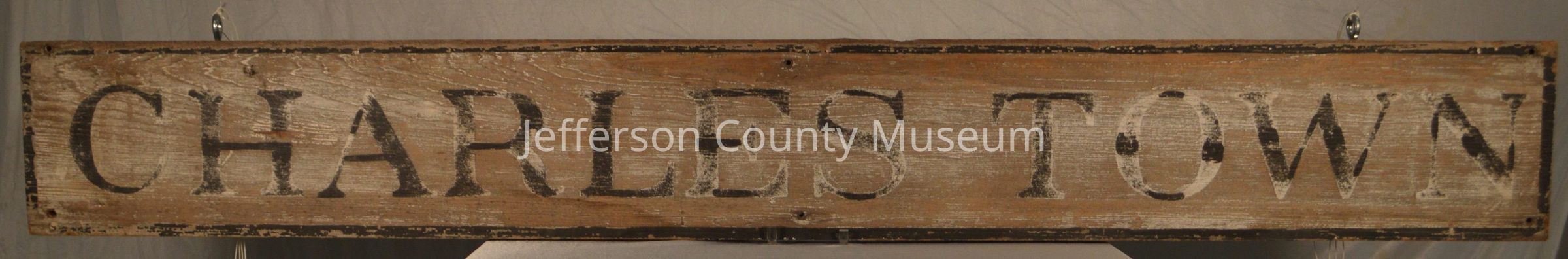 Wooden sign with "CHARLES TOWN" painted in black. Black border around sign.Acquisition