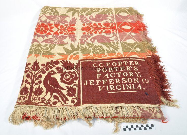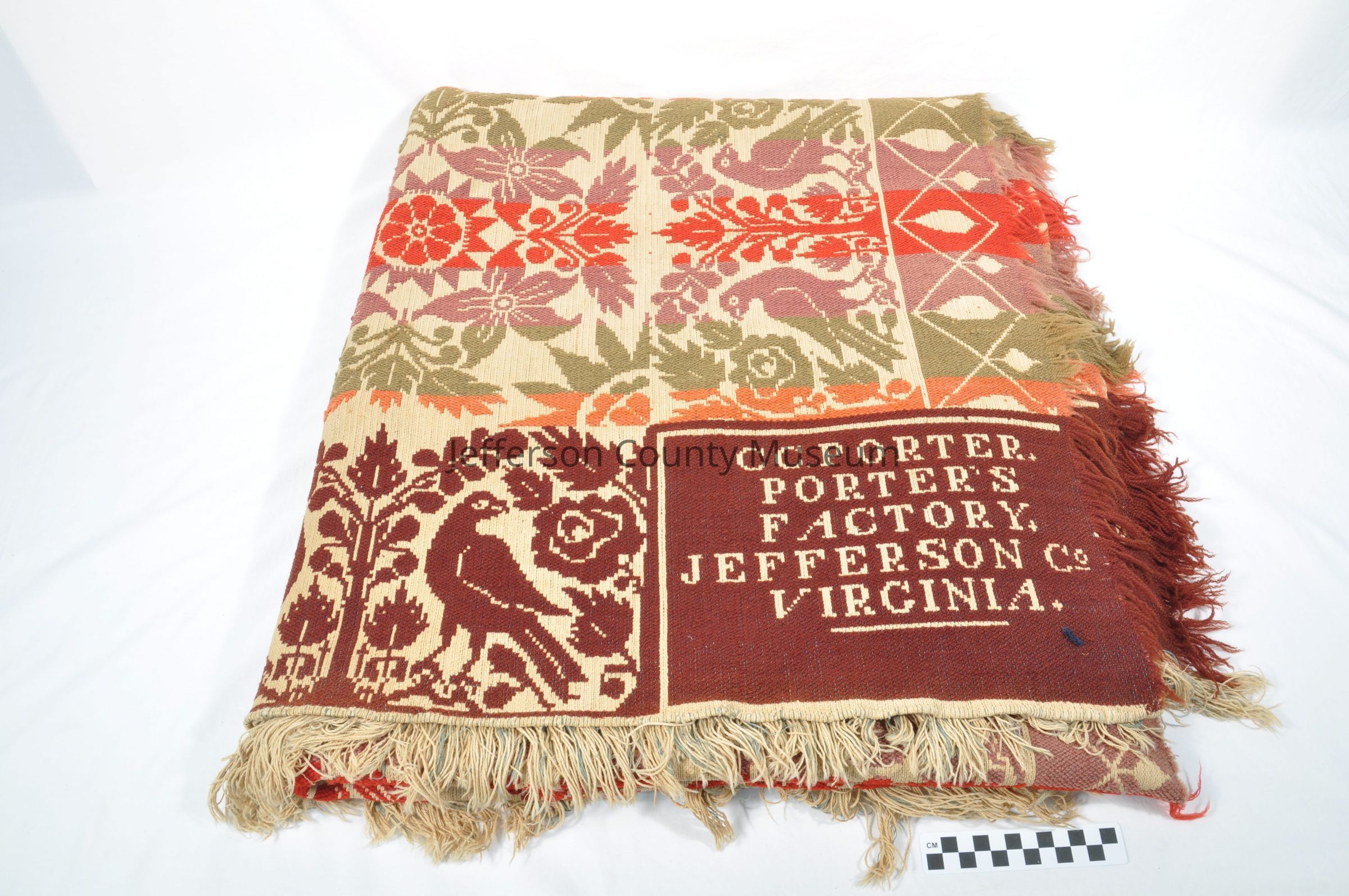 Five color jacquard woven coverlet made at Colin Porter Factory. Marked in all four corners "C C. PORTER + PORTER'S FACTORY + JEFFERSON CO VIRGINIA+".Acquisition