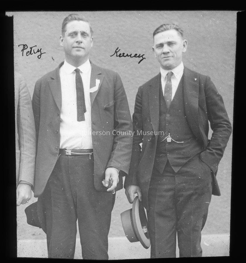 Two men standing with hats in hand - William Petry and Frank Keeney (March 15, 1882 - May 22, 1970); Petry and Keeney were in Charles Town for the Miners' Trials.Acquisition