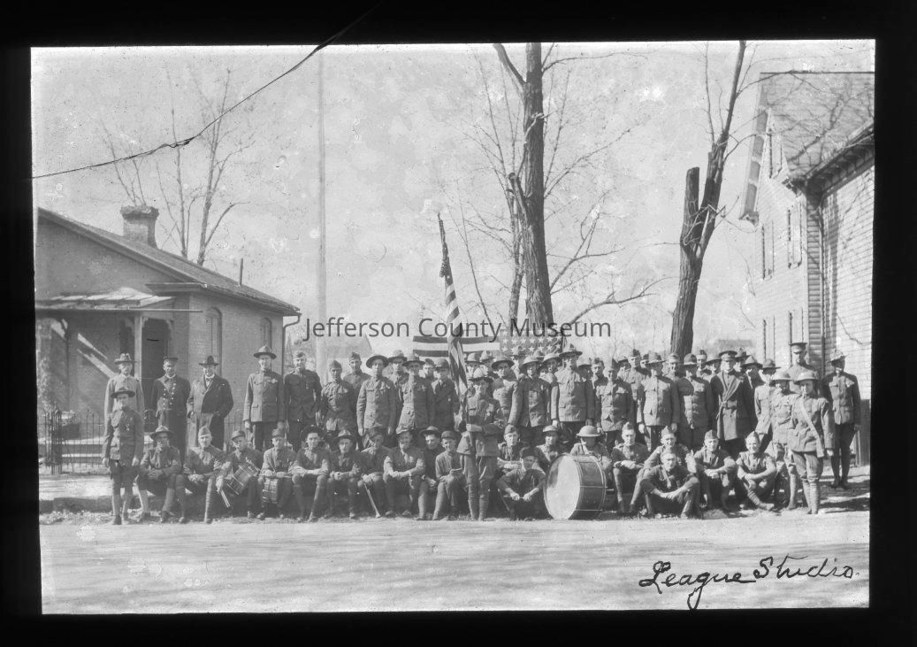 World War I soldiers at a position on East Washington Street near the Library and Civic Center. The building on the left was the office Dr. James M. Ranson, Jr. This group were the original American Legion members of Jackson Perks Post. The dentist's office became, with several additions, the building known as the Old Charles Town Library.Acquisition