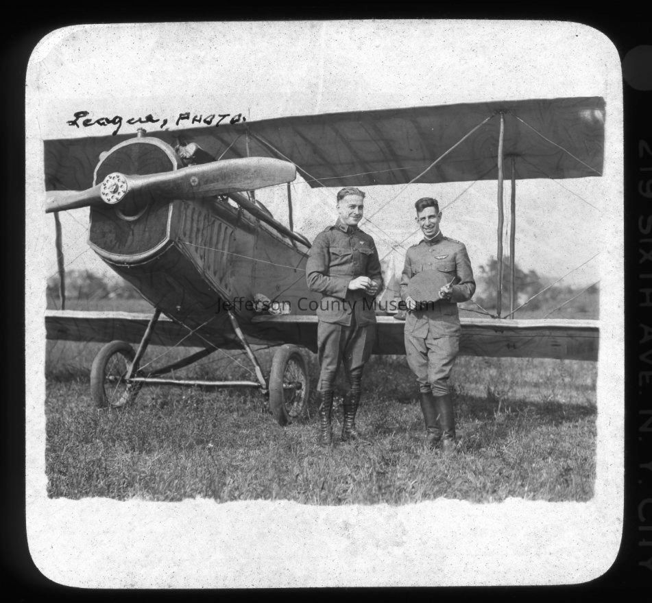Airplane and two men in uniform Part of "First Visitors to Charles Town by the Air Route" slide show