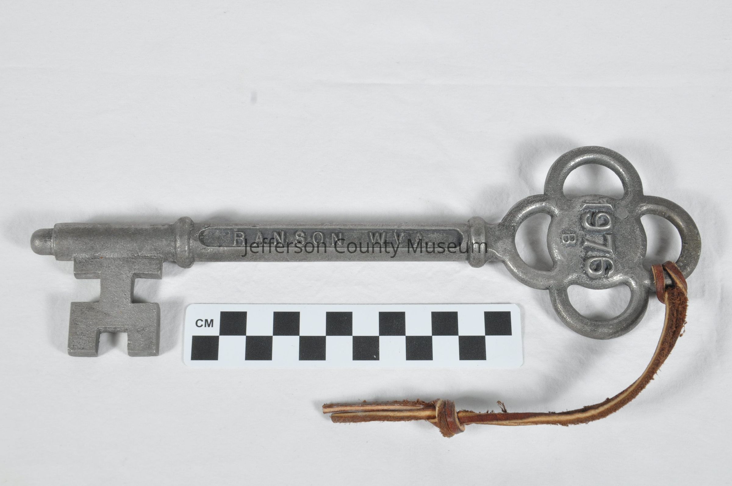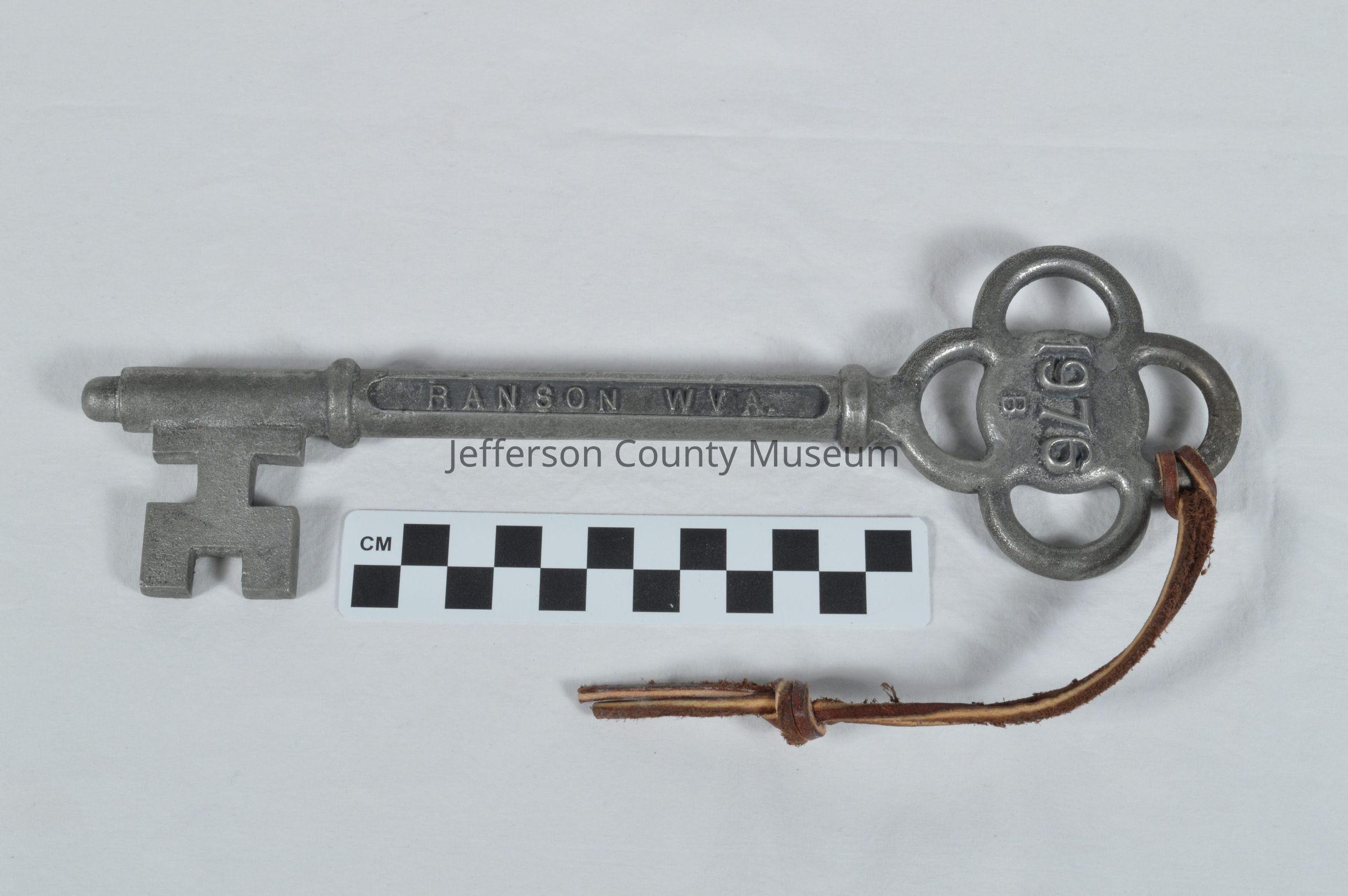 "B" stands for maker, Bradley E. Baer. According to Mr. Baer, who lived in Ranson at the time, he made the key for U.S. Bicentennial celebration when a cross-country wagon train stopped here.Acquisition