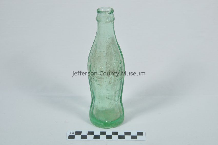 Light green, classic design, glass Coca-Cola bottle. Embossed around middle "Coca-Cola TRADE MARK REGISTERED BOTTLE PAT'D NOV. 16, 1915". On bottom "CHARLES TOWN W.VA.".Acquisition