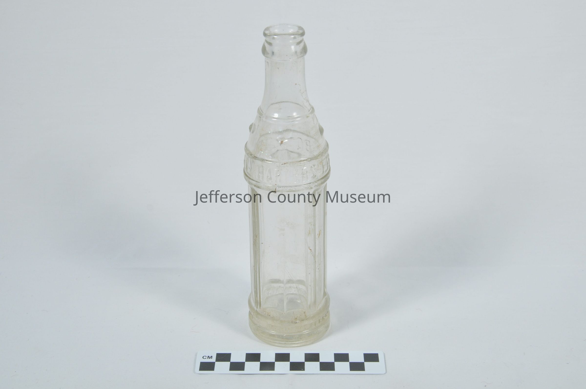 Clear glass soft drink bottle. Embossed near top "HARPERS FERRY BOTTLING WKS". Around bottom "CONTENTS 7 FLU. OZS. HARPERS FERRY W.VA.".Acquisition