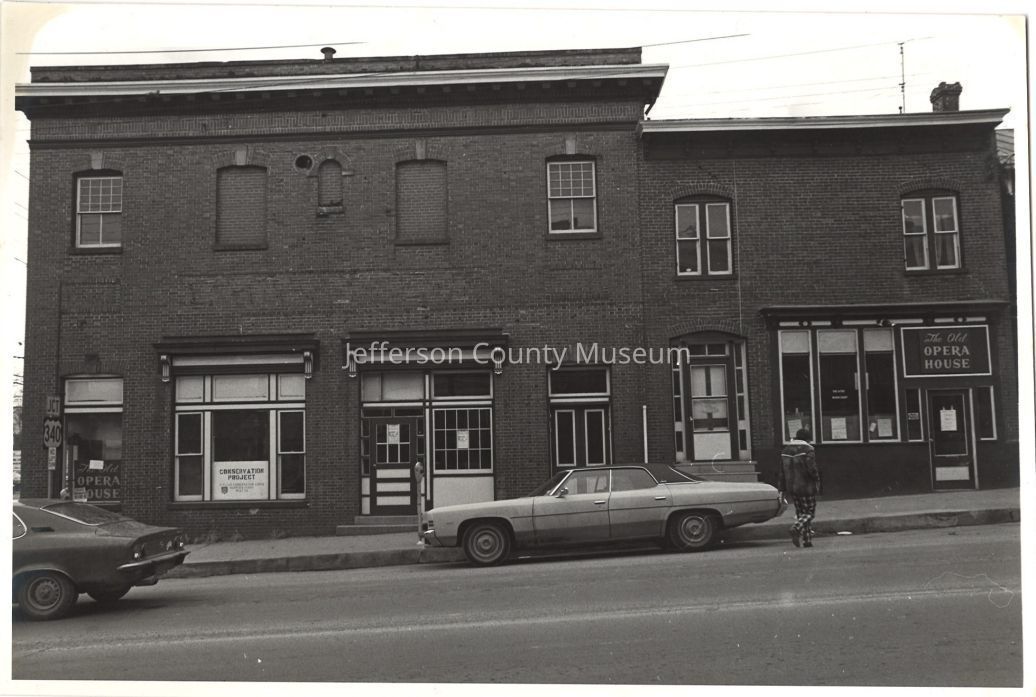 A caption displayed in the Opera House's scrapbook with the original photo says " Closed in 1948 and condemned in 1954, the New Opera House stood vacant until 1971 when restoration began. The Old Opera House Theatre Company was formed in 1973 and building was donated by Mr. and Mrs. Augustine Todd (Mrs. Todd was the daughter of Annie G. Packett). In 1976 the curtain went up on the main stage for "My Fair Lady."