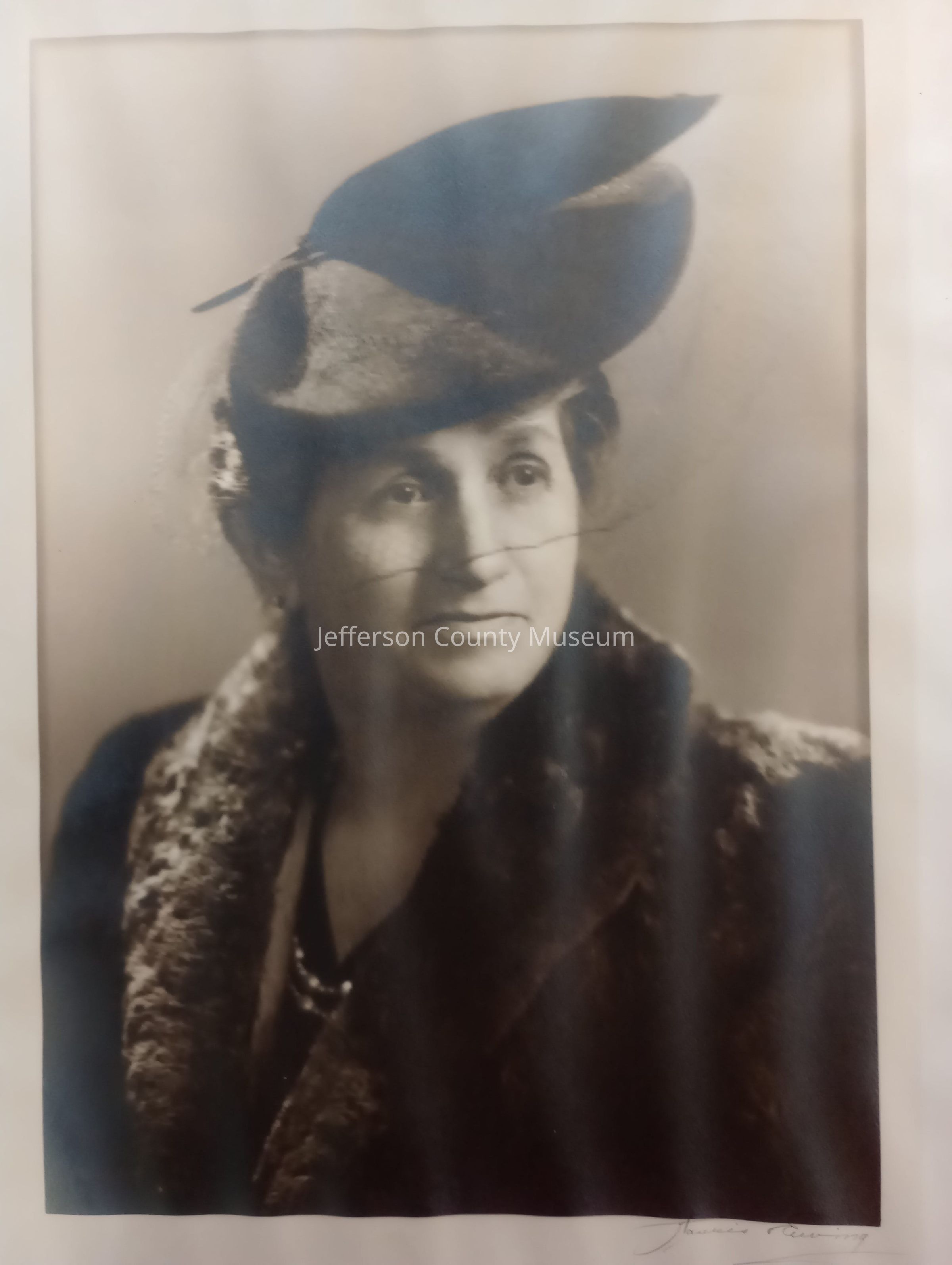 Black and white photographic portrait of Rebecca Viener, wife of Ranson businessman Hyman Viener. She is pictured wearing a hat and fur coat.Photograph Details