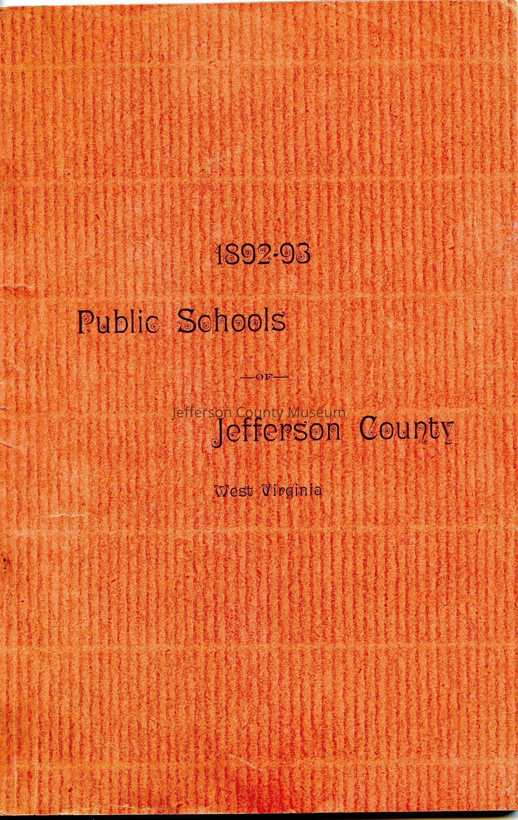 Red paperback book "1892-93 Public Schools of Jefferson County West Virginia" or on title page "Catalogue of the Officers, Teachers, and Pupils of the Public Schools of Jefferson County, West Virginia"Acquisition