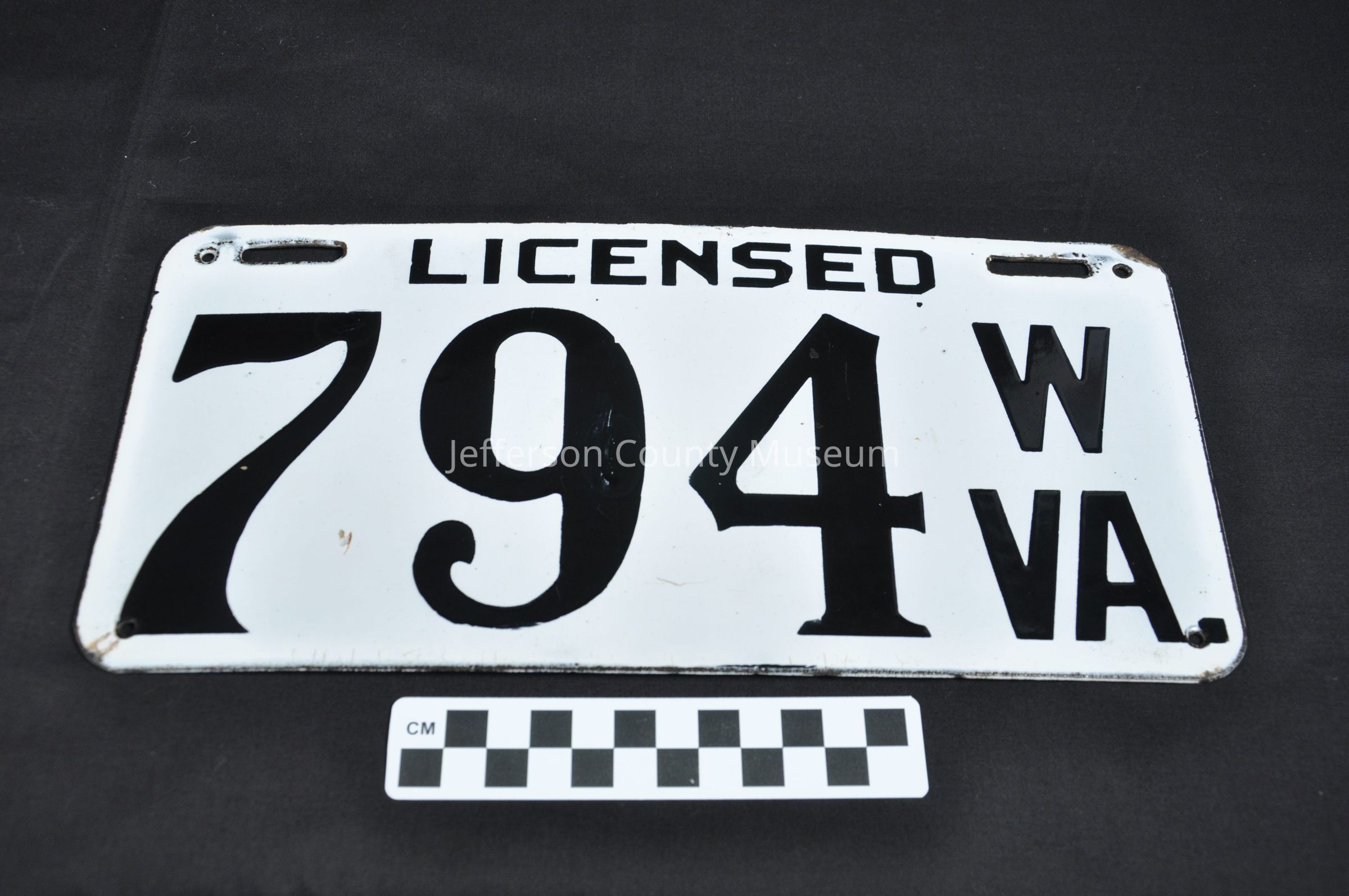 Black numbers on white enamel marked "LICENSED W VA. (no year) 794".