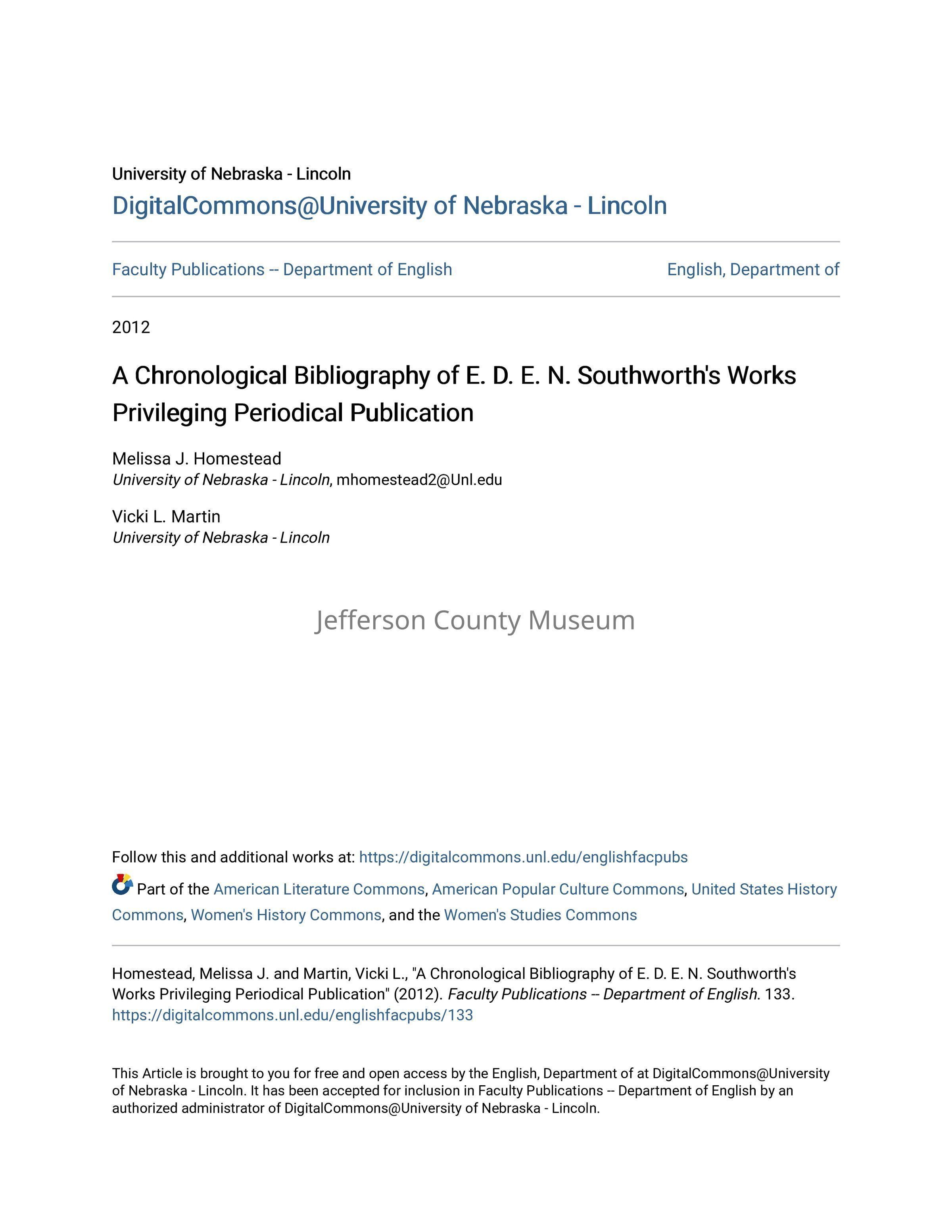 See Media for "A Chronological Bibliography of E. D. E. N. Southworth's Works."