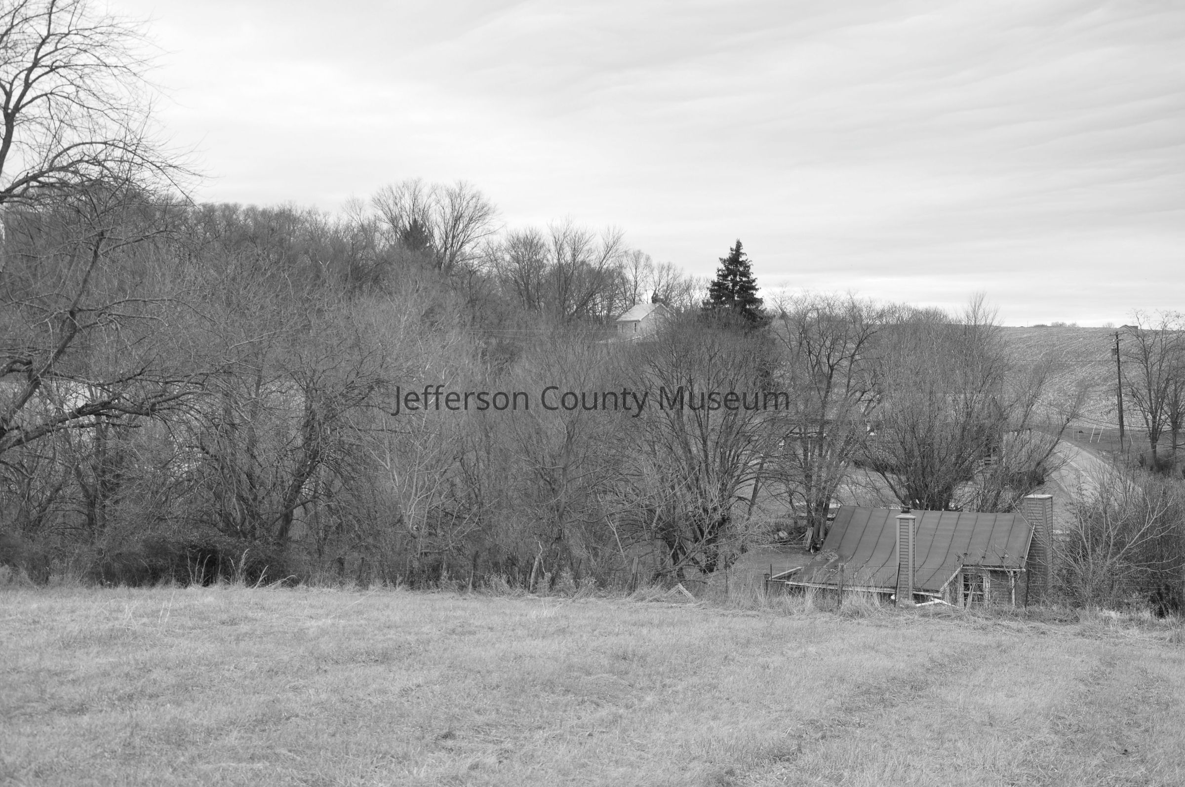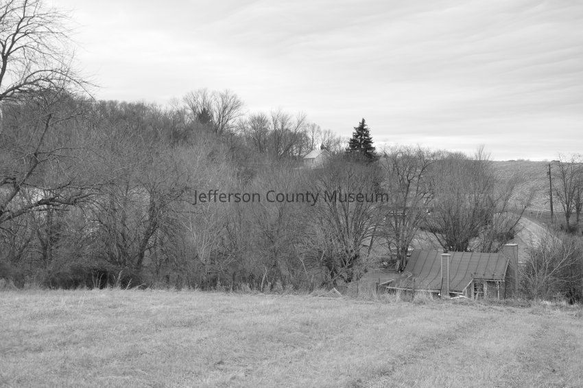 Kabletown looking northeast from a hill above and south of the Bullskin Run showing, among other structures, the Johnson's grocery store
