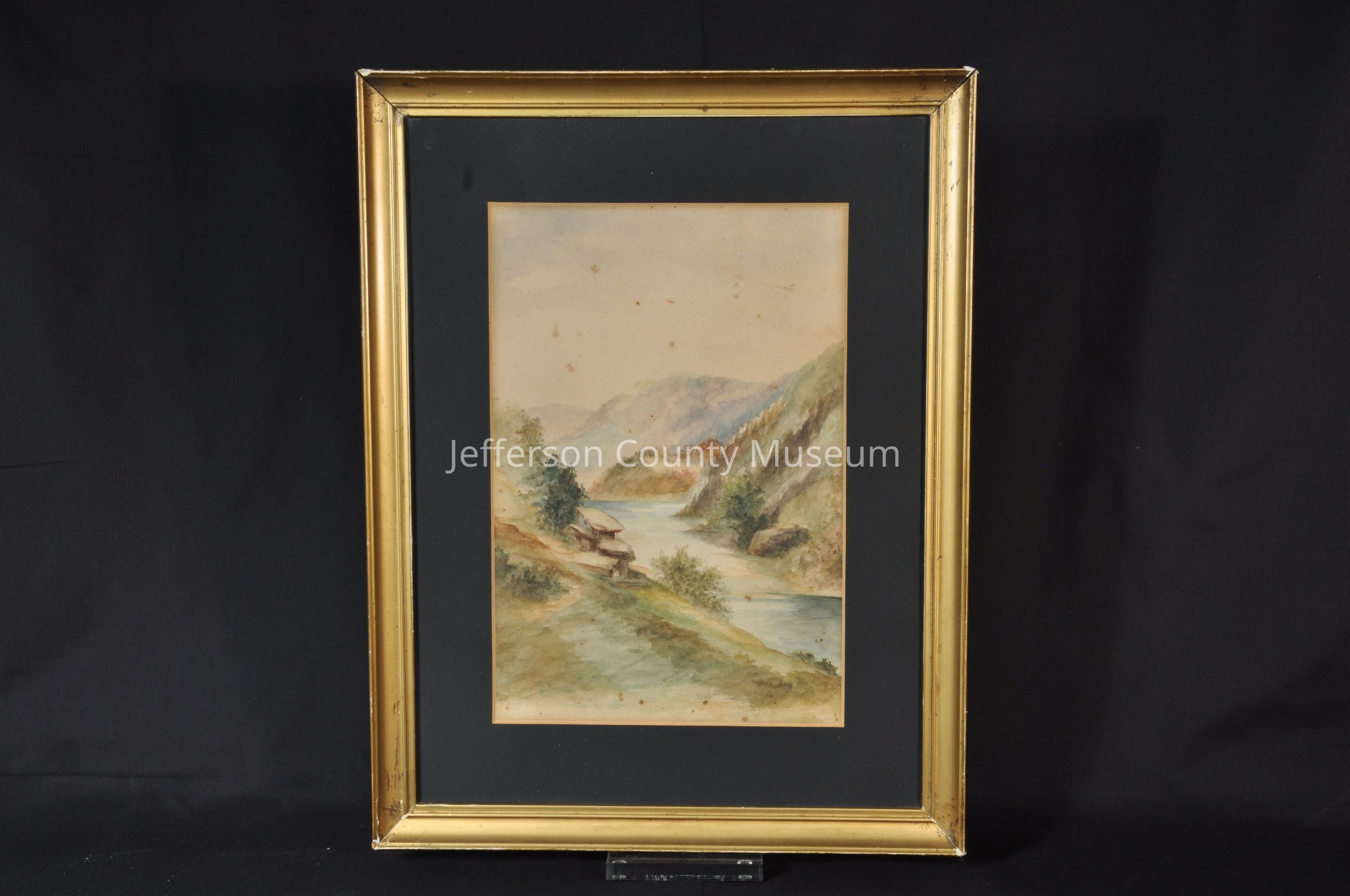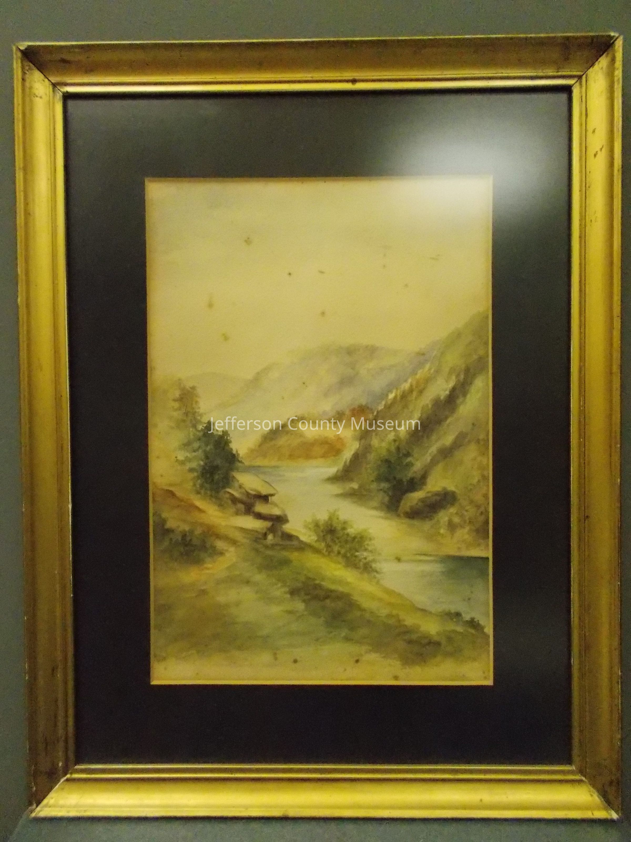Watercolor of Jefferson Rock by Louise Wood Brackett, who taught in the Storer College Art Department. Framed.Acquisition