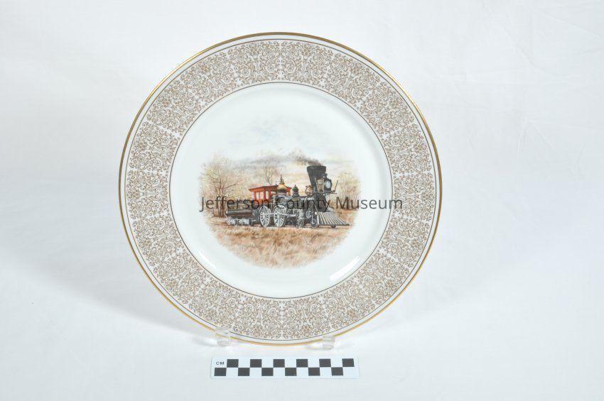 Plate is exactly like catalog #1419 except scene is of steam engine. On back is description "THE GENERAL". Object box is numbered, however the object itself is not as the original package has not been opened.Acquisition