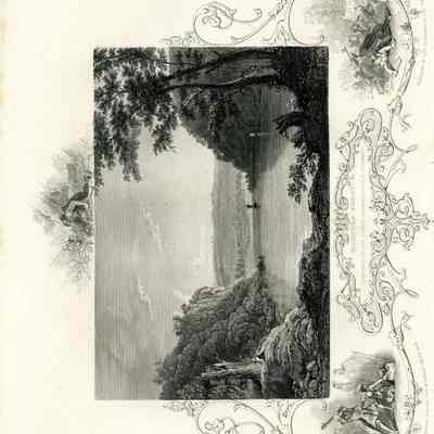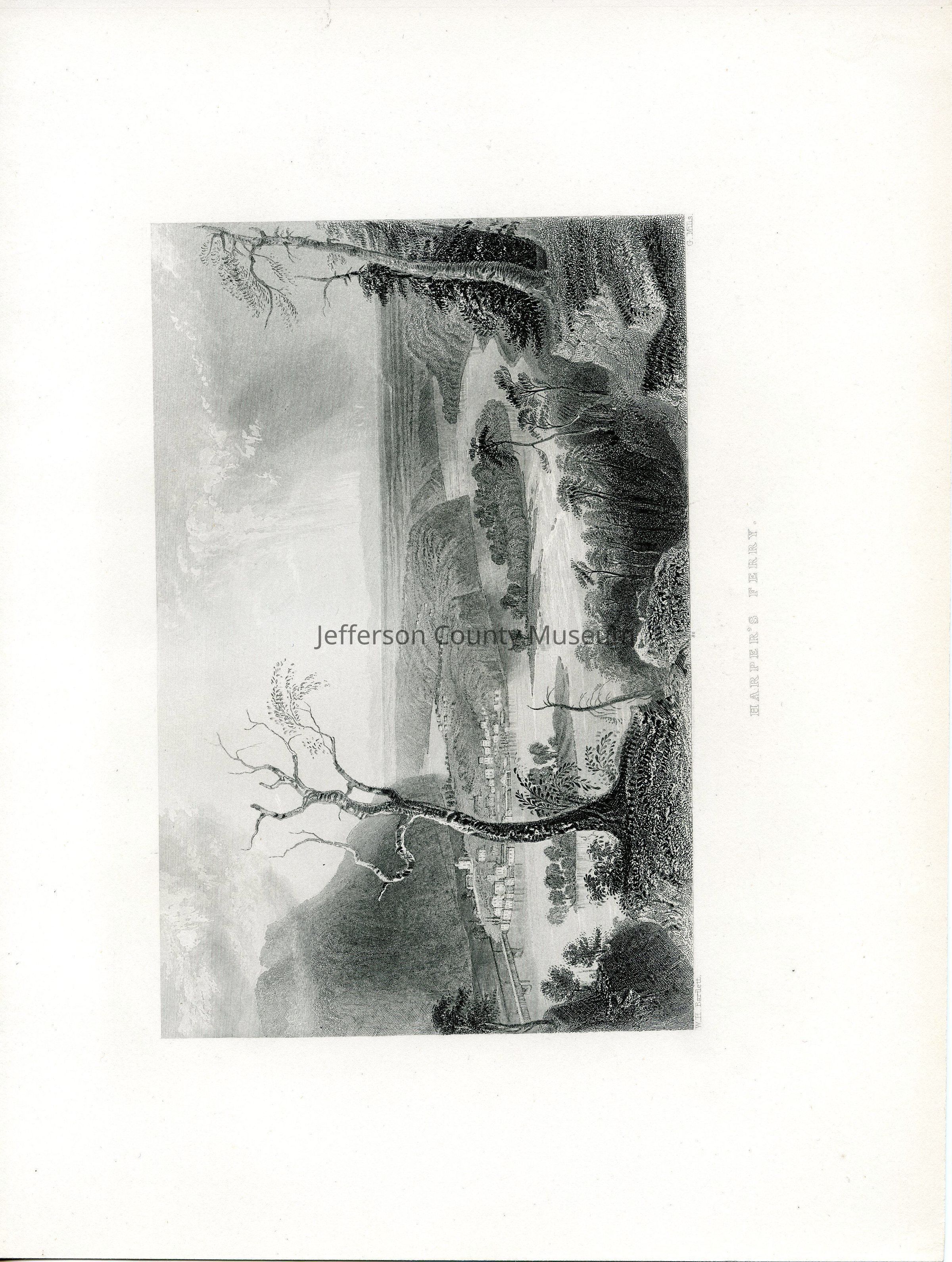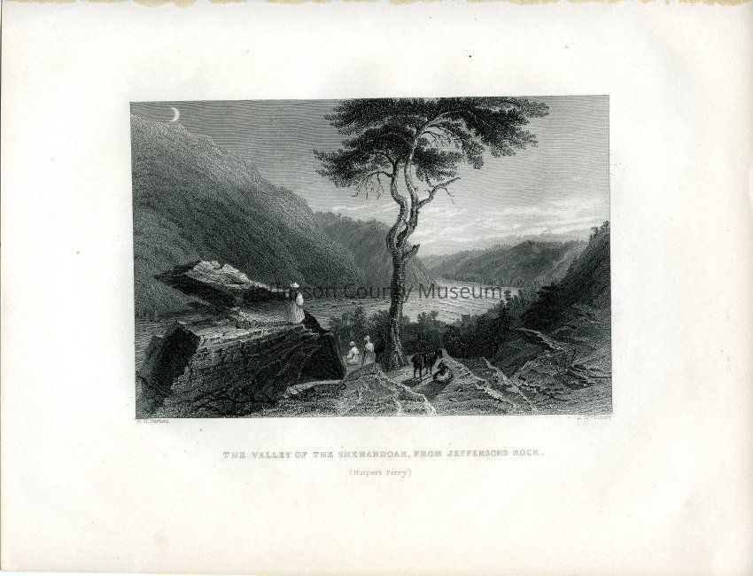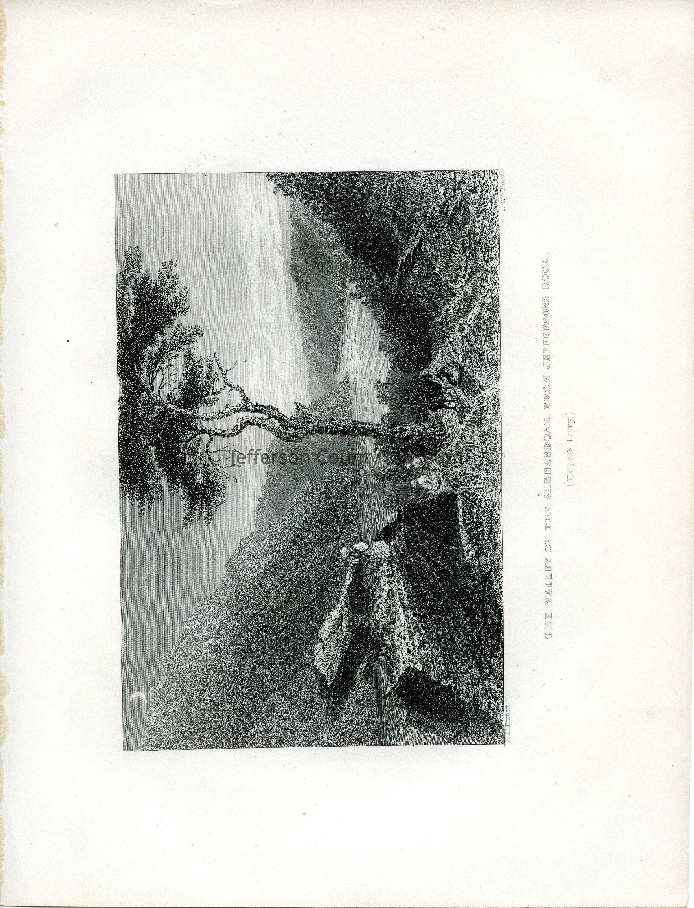 IMG2983-6: Front reads: "The Valley of the Shenandoah, From Jeffersons Rock, Harper's Ferry, W.H. Bartlett, J.T. Willmore". Verso reads: Bartlett 1840. size 8.5" x 11"Acquisition