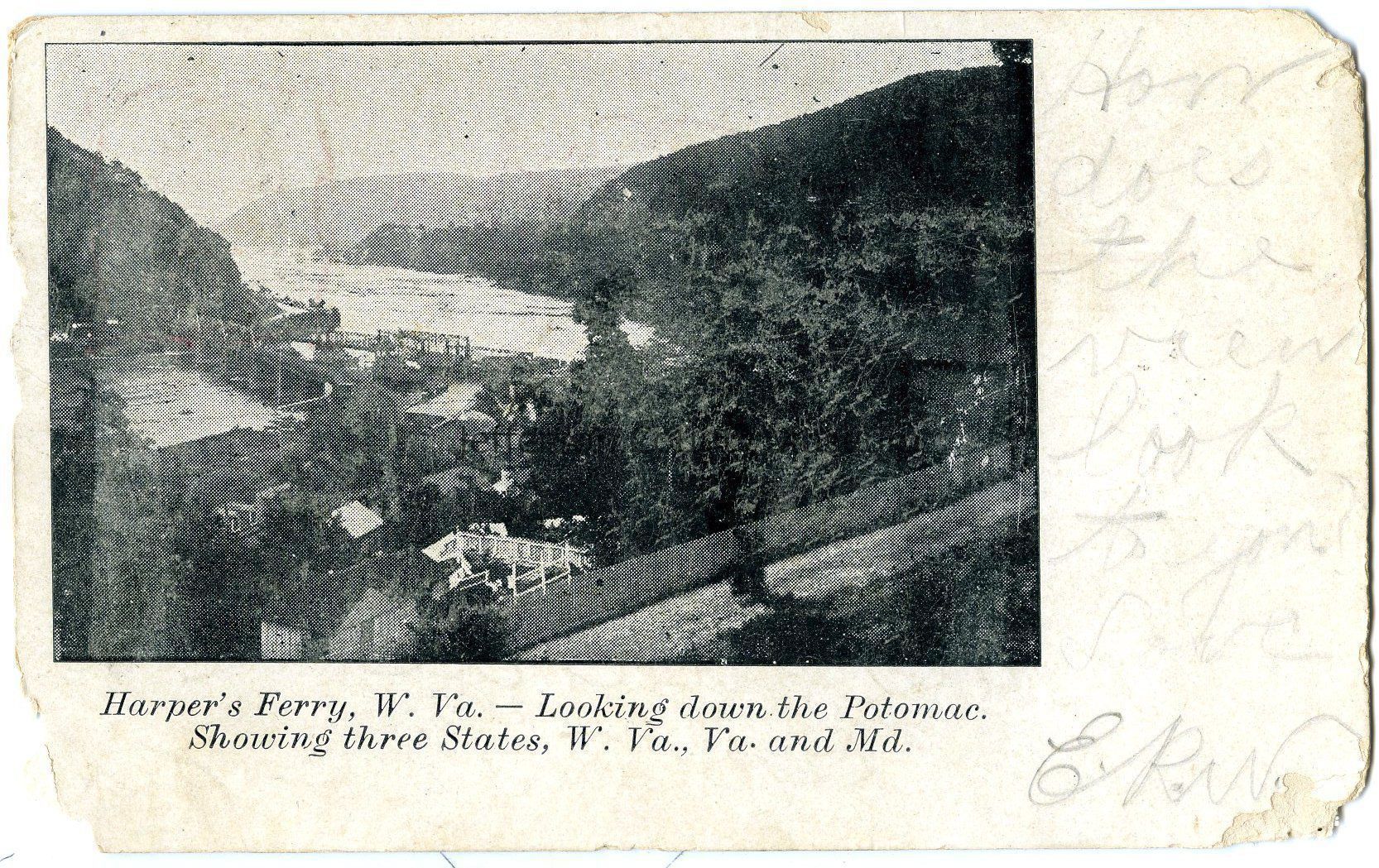 Harper's Ferry, W. Va.-- Looking down the Potomac. Showing three States, W.Va., Va. and Md.
