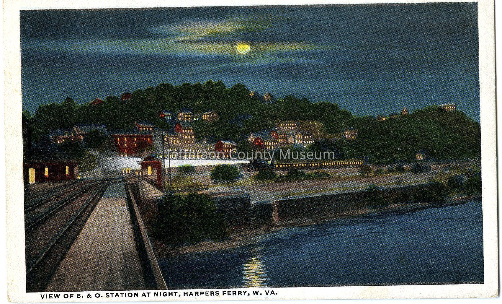 View of B. & O. Station at Night, Harpers Ferry, W. VA.