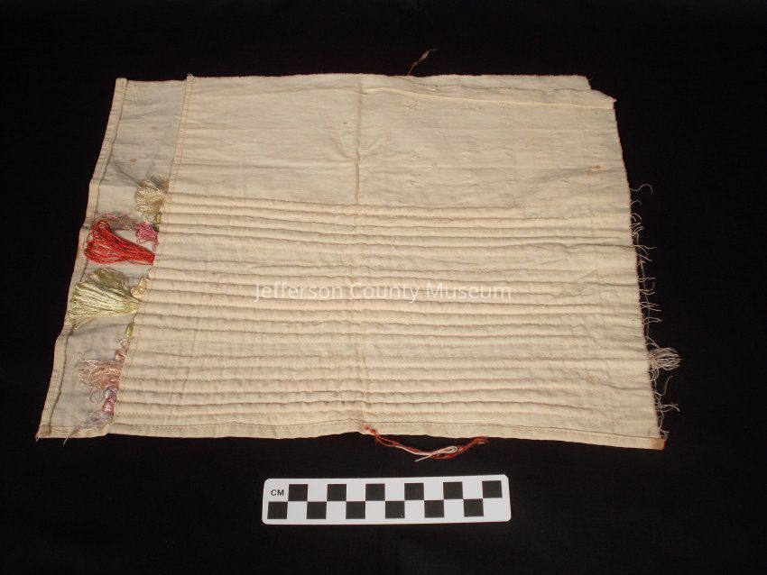 Muslin with seamed ribs holding various colored silk threadEntry/Object ID