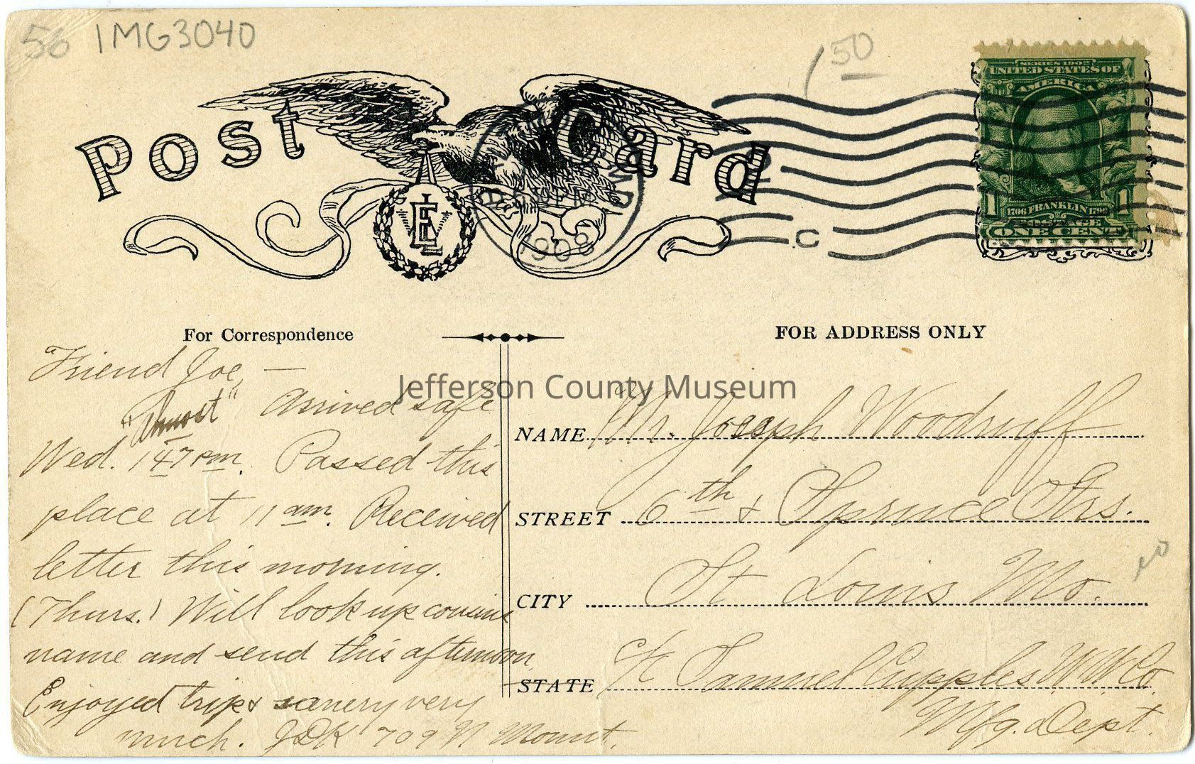 Post-marked 1908, Baltimore, MD. Full date unreadableAcquisition
