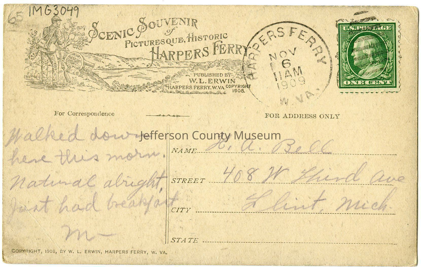 Post-marked November 6, 1909, Harpers Ferry, W. VA.Acquisition