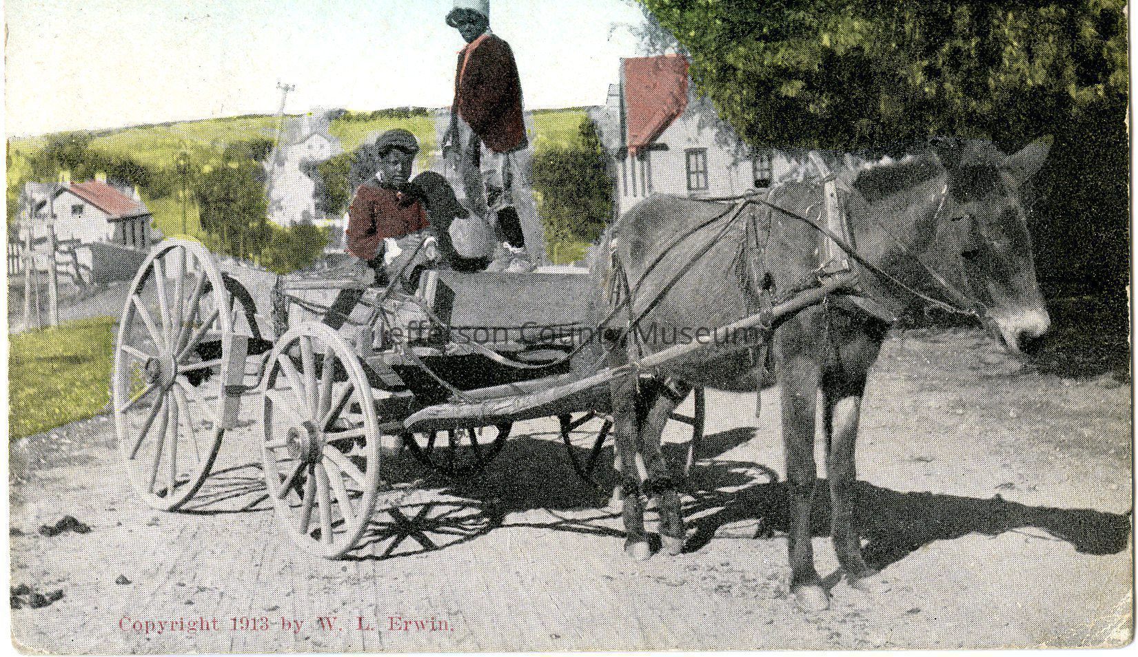 Rapid Transit at Harper's Ferry, showing two African Americans on a wagon pulled by a mule
