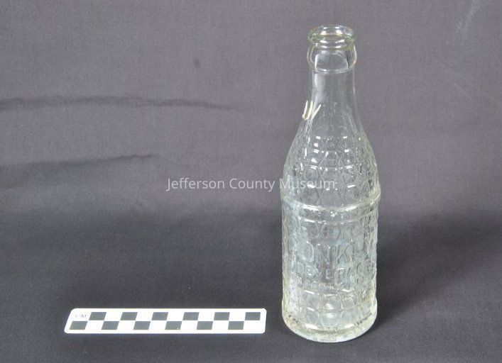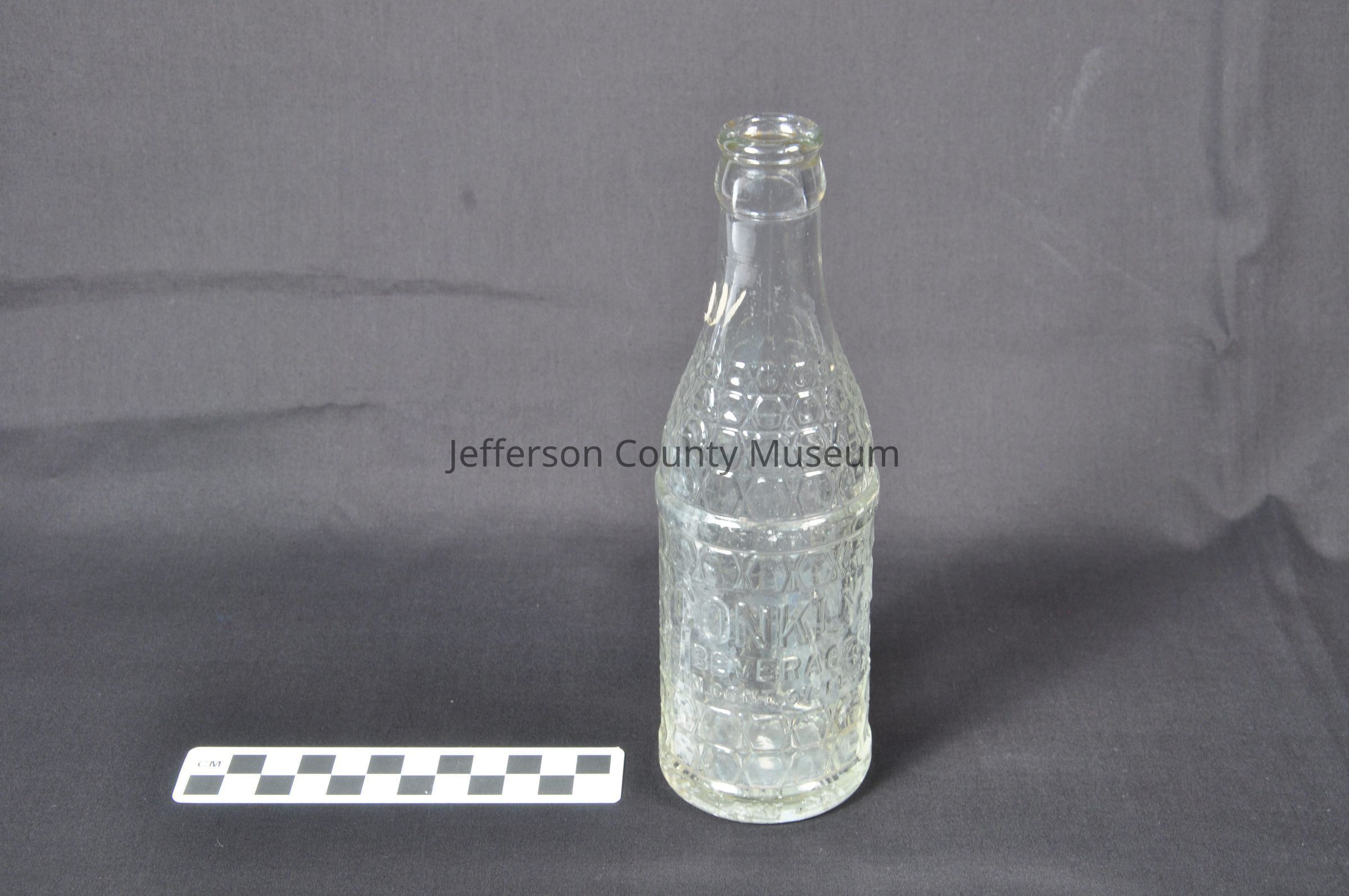 Clear glass beverage bottle with raised design from bottom to three-fourths of the way up. In center of bottle "CONKLYN BEVERAGES MIN. CONT. 6 1/2 FL.OZS." On bottom "CHARLES TOWN, W. VA."Acquisition