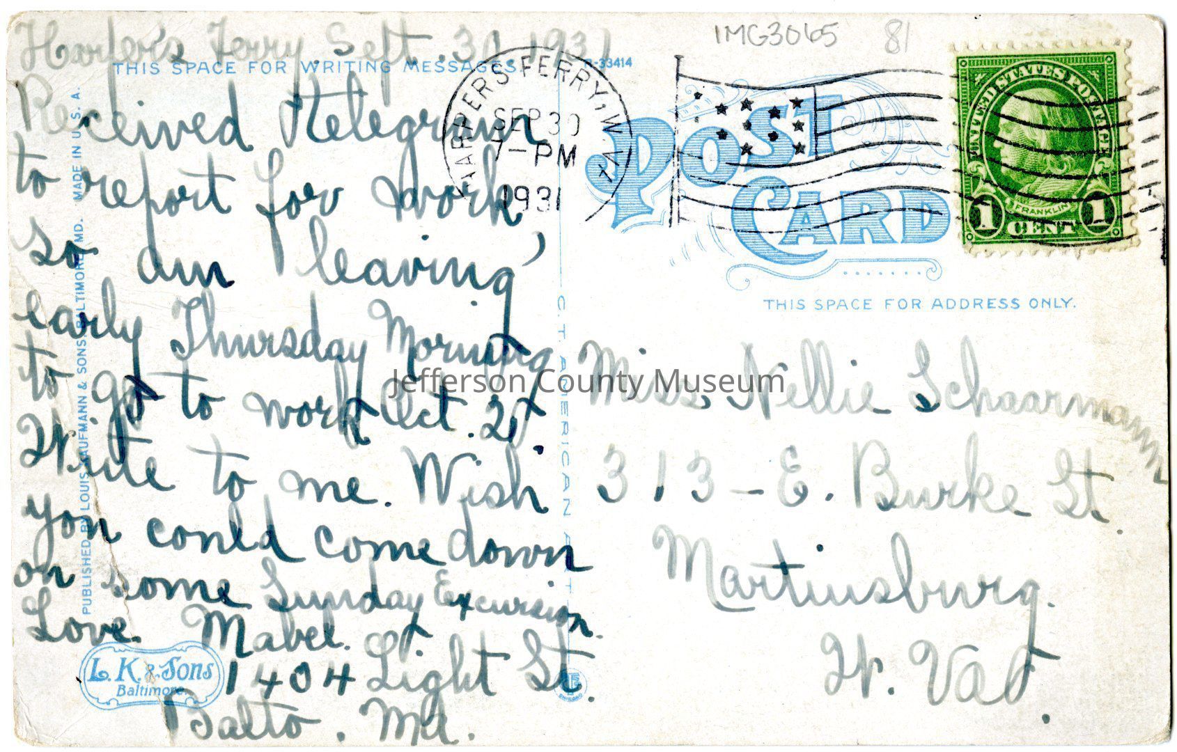 Post-marked September 30, 1931.Acquisition