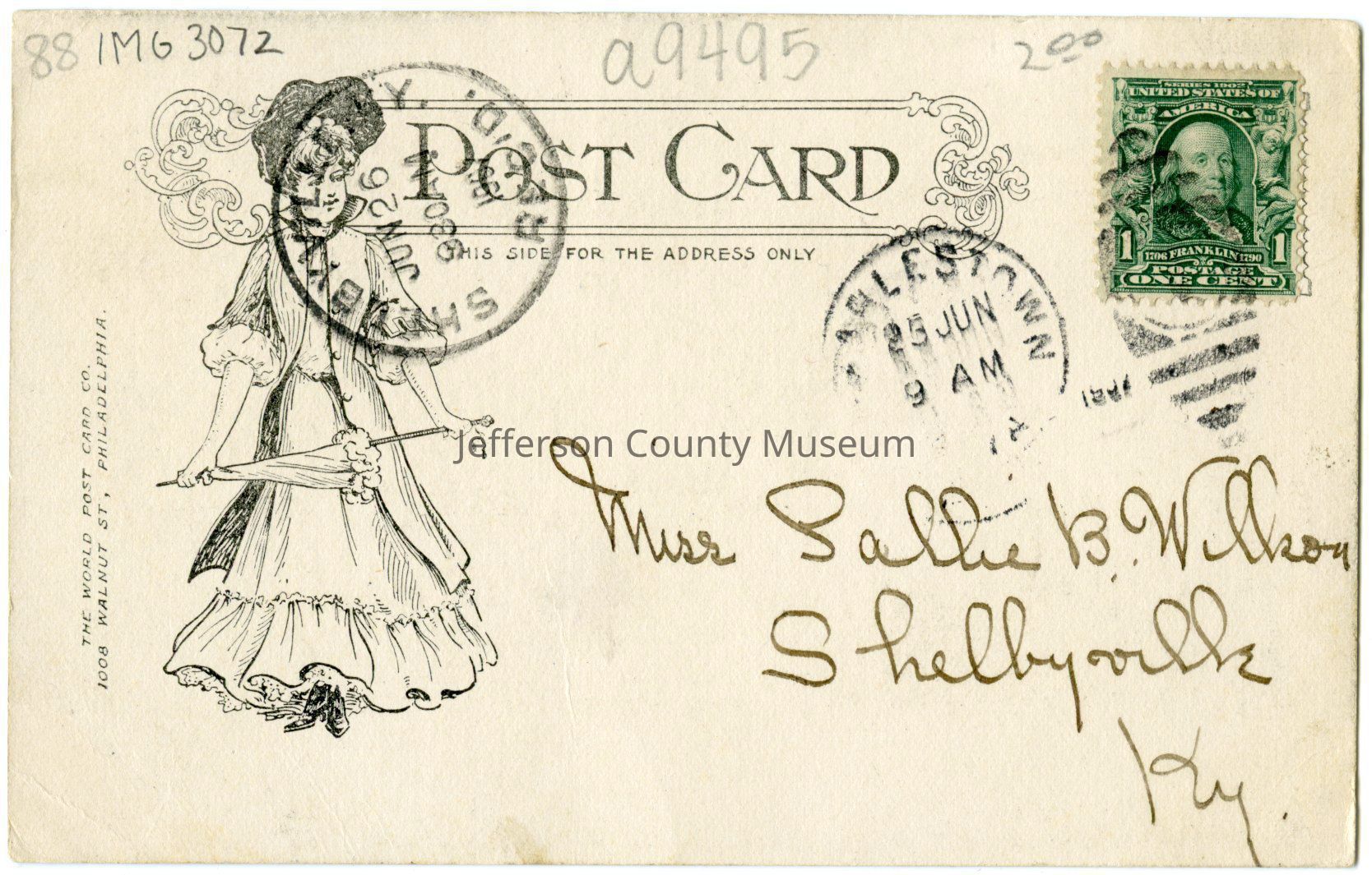 Post-marked again on June 26, 1907 in Shelbyville, KY.Acquisition