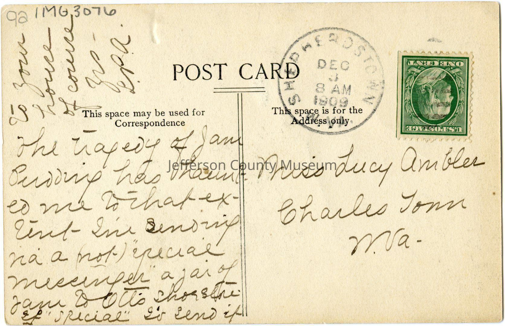 Post-marked December 3, 1909.Acquisition