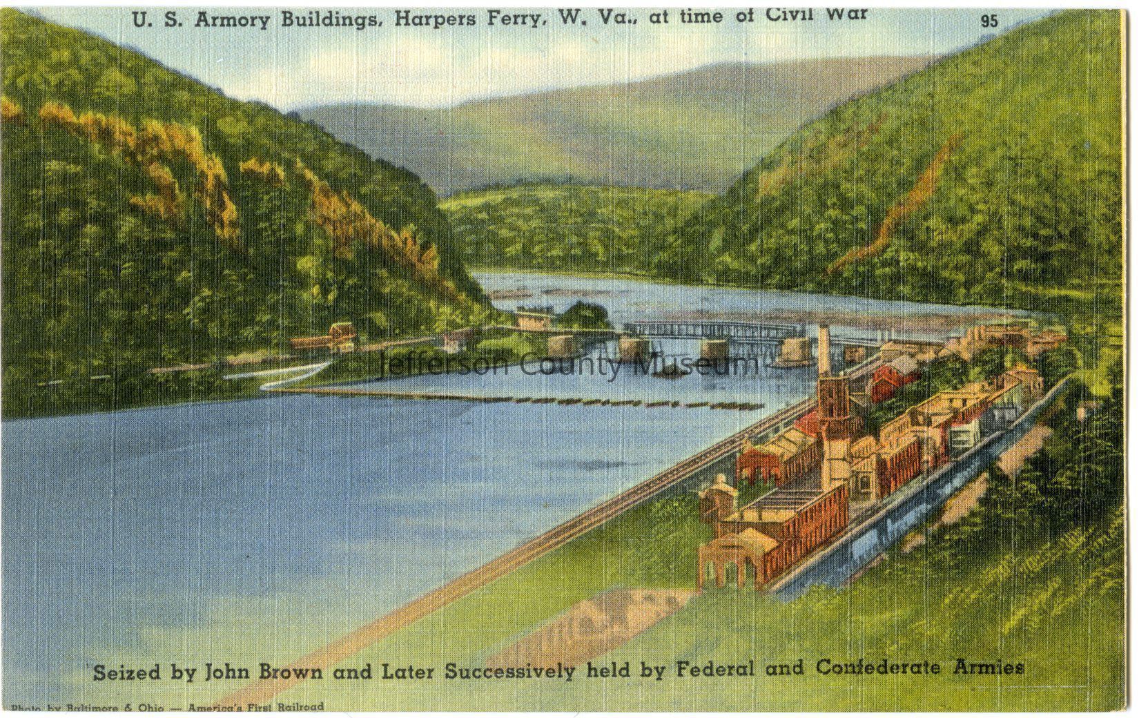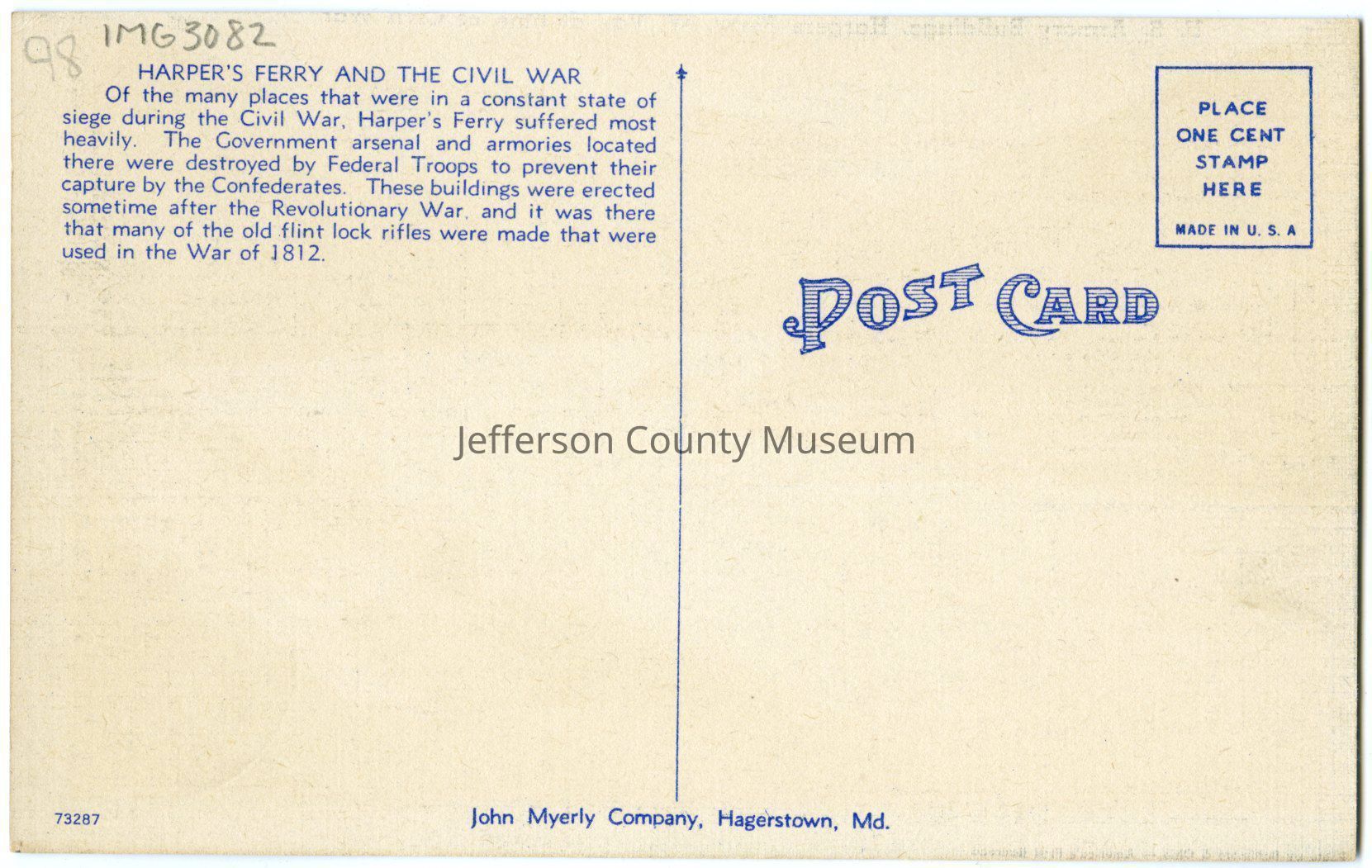 Brief description of the history of Harpers Ferry and its involvement in the Civil War printed on back left side.Acquisition
