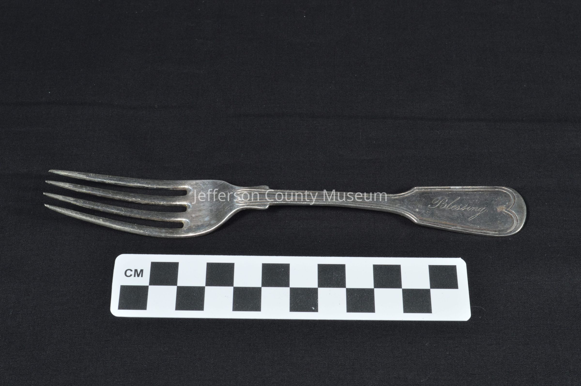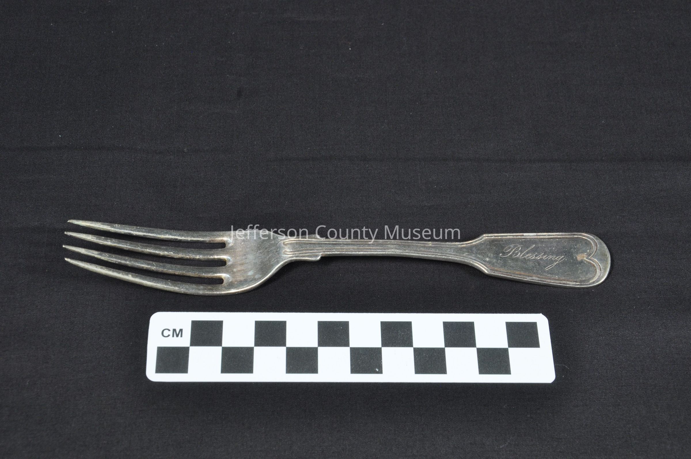 Sterling silver four-tined fork with "Blessing" engraved on handleEntry/Object ID