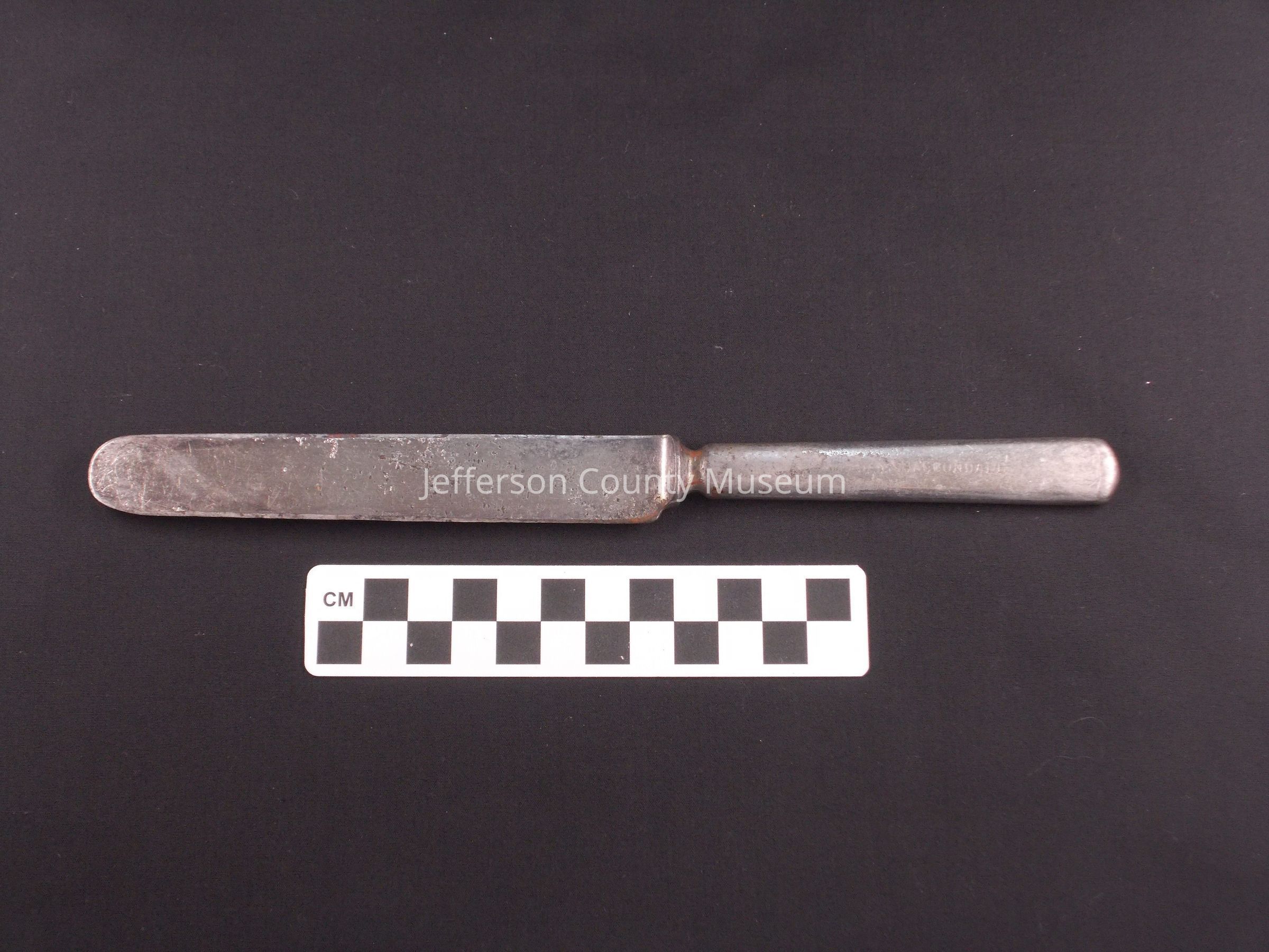 Silver plated dinner knife engraved "SHANNONDALE" on handle. No other marks.