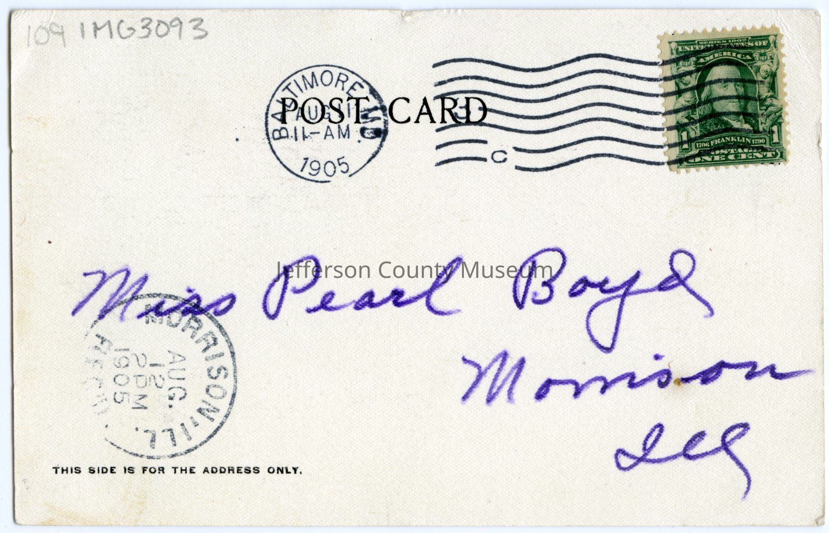 Post-marked again on August 12, 1905, Morrison, IL.Acquisition
