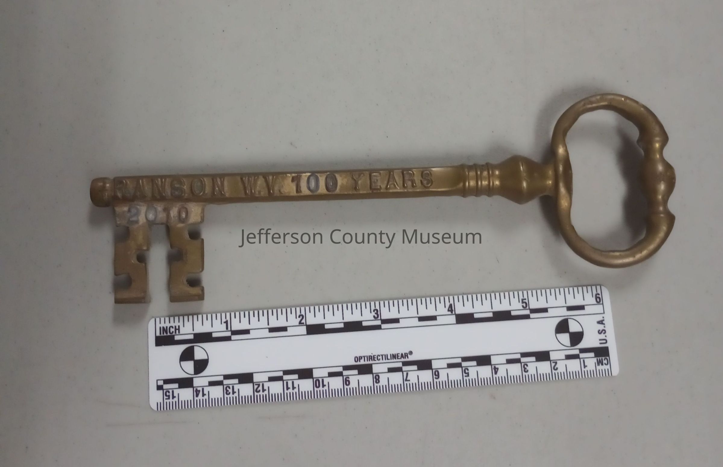 Brass key to the city of Ranson for the 100th anniversary in 2010. Created by Bradley Baer as a souvenir of the commemoration.Acquisition