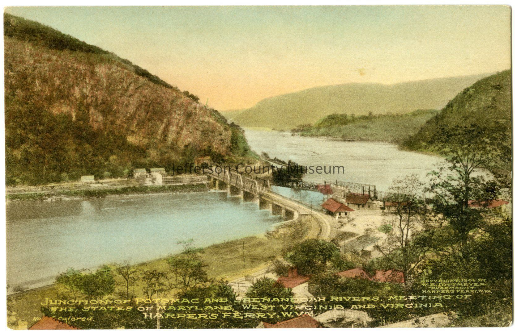 Junction of Potomac and Shenandoah Rivers. Meeting of the States of Maryland, West Virginia and Virginia. Harper's Ferry, W. VA.Entry/Object ID