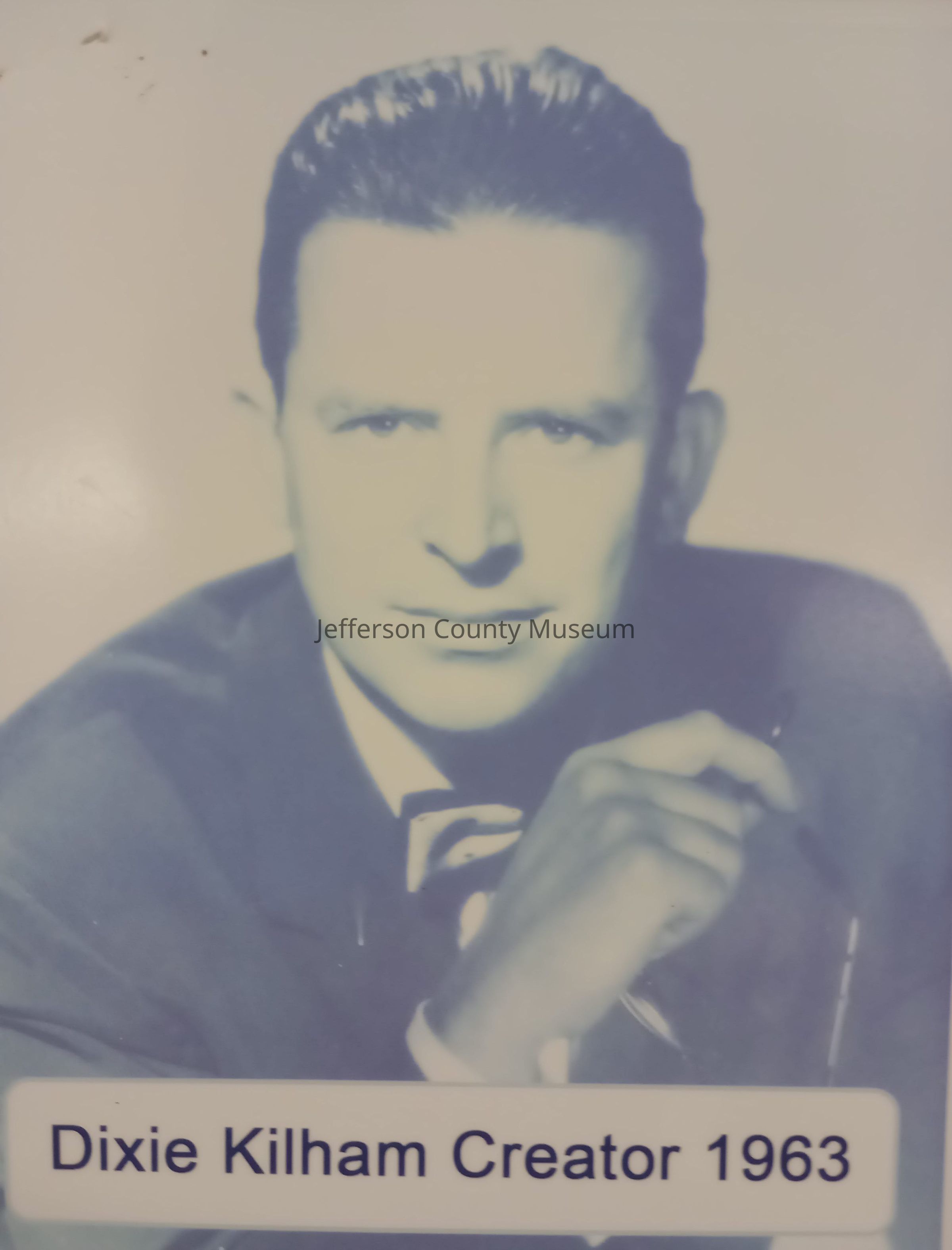 Black and white photograph of Dixie Kilham, founder of the John Brown Wax Museum, with caption "Dixie Kilham Creator 1963".Photograph Details