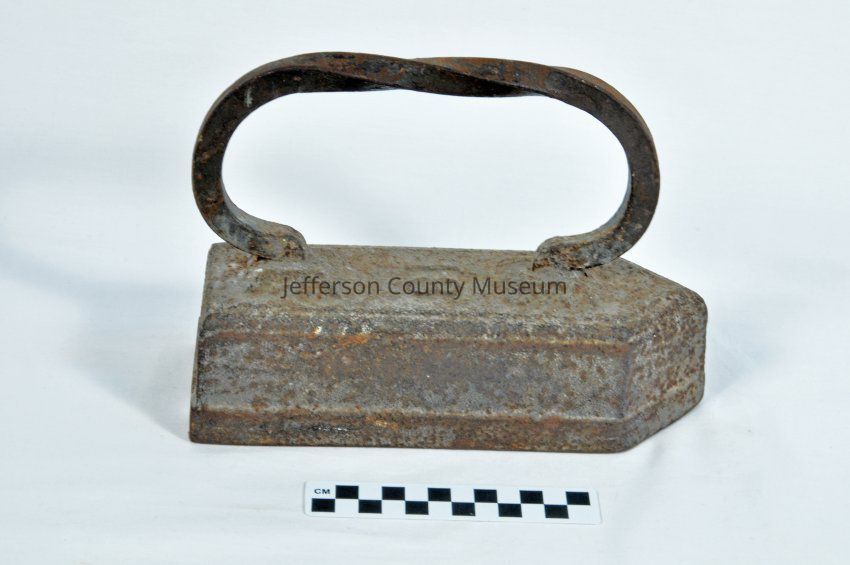 Heavy flat iron. Large iron handle has two twists in the grip. The number "18" is embossed on top of iron.Acquisition