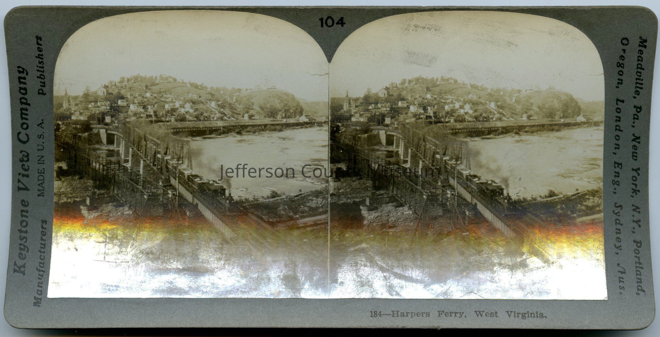 View of hillside town of Harpers Ferry, Va., as well as a view of the railroad bridge.Acquisition