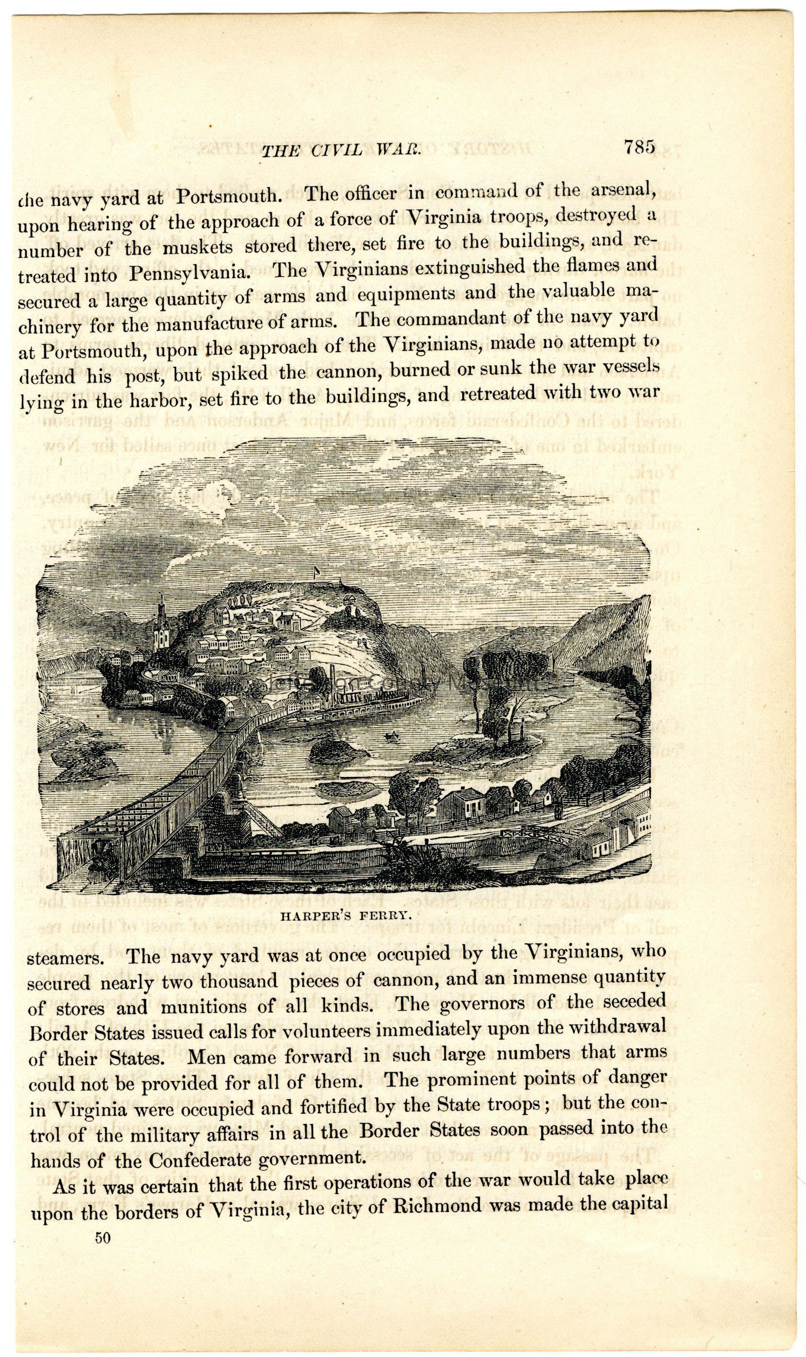 Engraving is from a page in a book, however the title is unknown. Image is located on page 785. There is printed text on both sides of the page.Acquisition