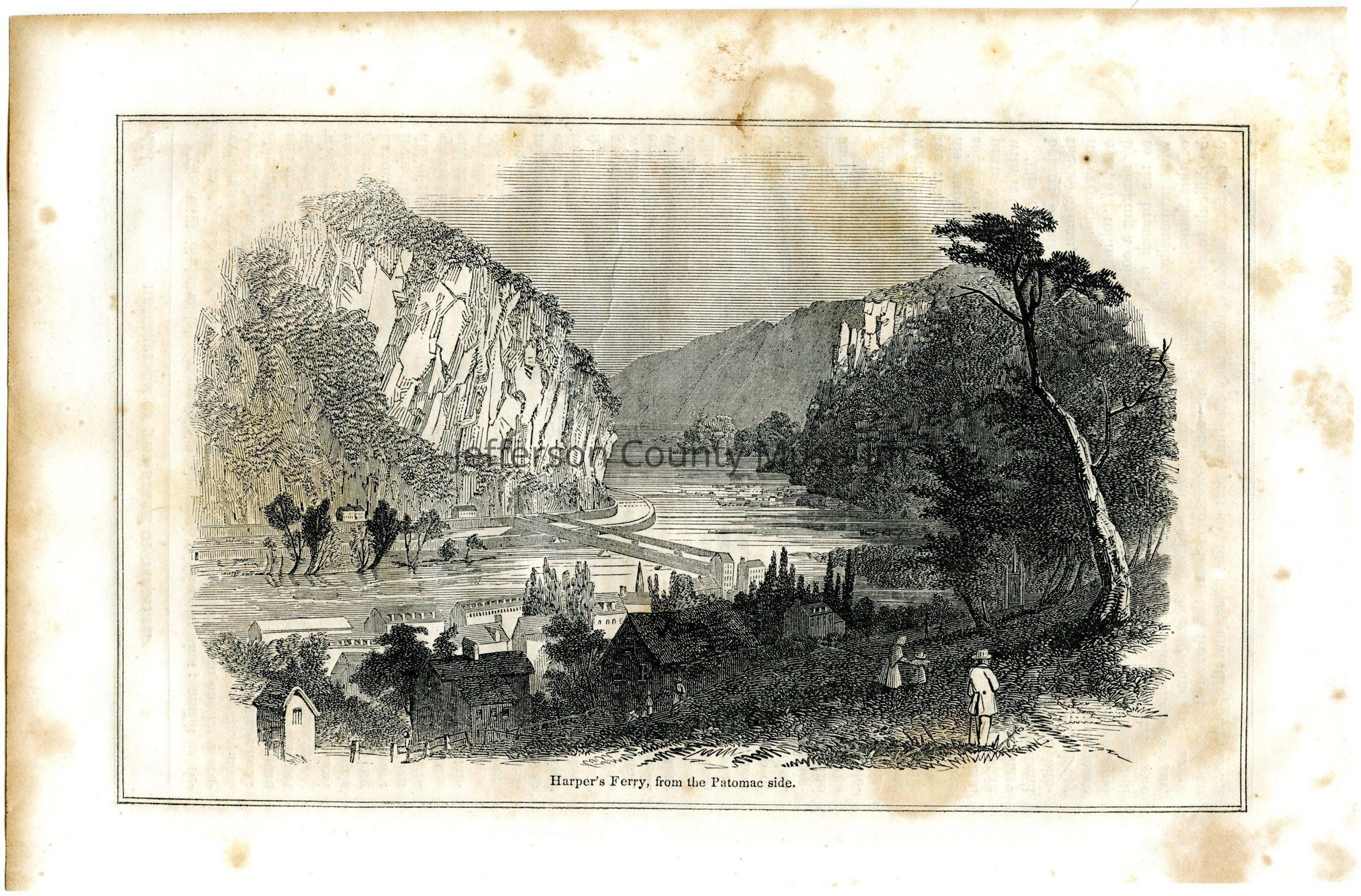Wood engraving of a scenic view of Harper's Ferry.