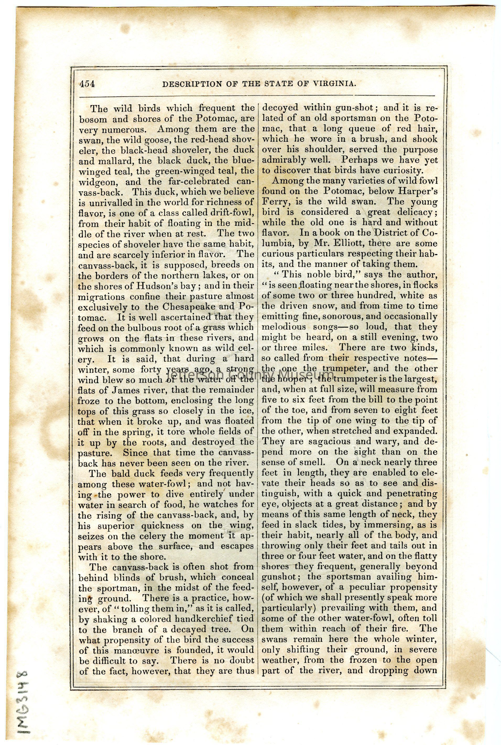 This image is printed on a page from a book, (titled above). There is printed text on the back side with the section titled "Description of the State of Virginia".Acquisition