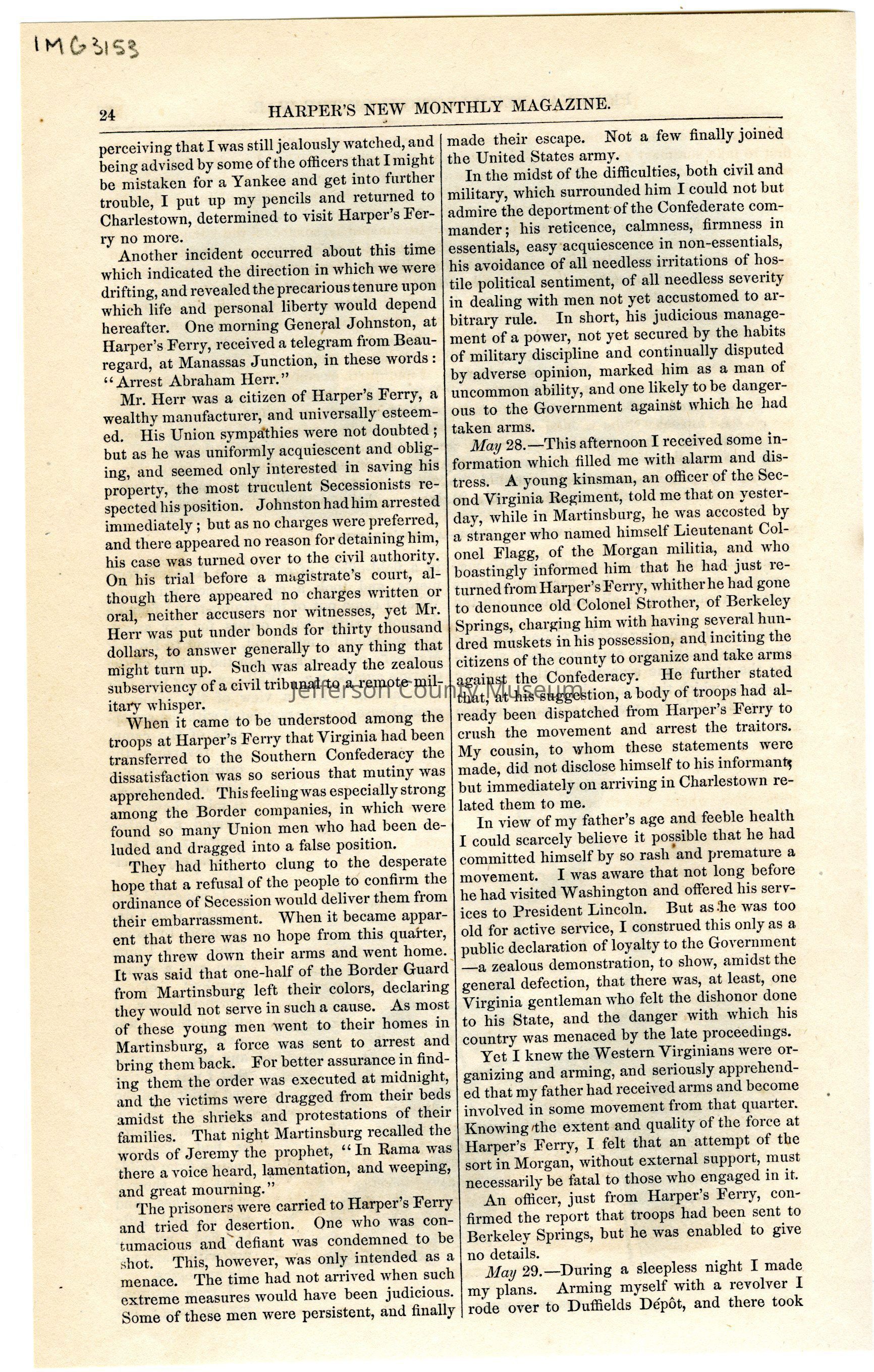 From David Hunter Strother, "Personal Recollections of the War, by a Virginian".