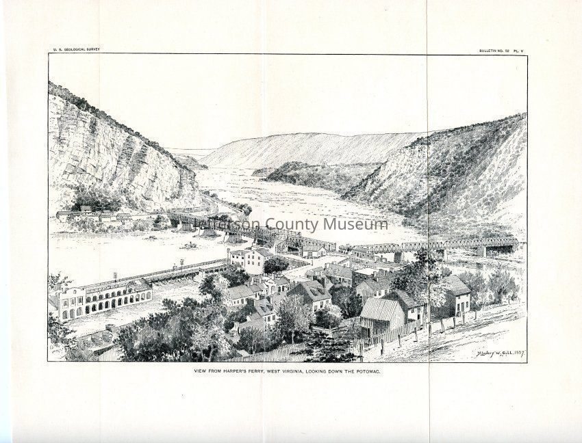 Steel engraving of a scenic view of Harper's Ferry and the Potomac River from the U.S. Geological Survey: Bulletin No. 52, Plate VAcquisition