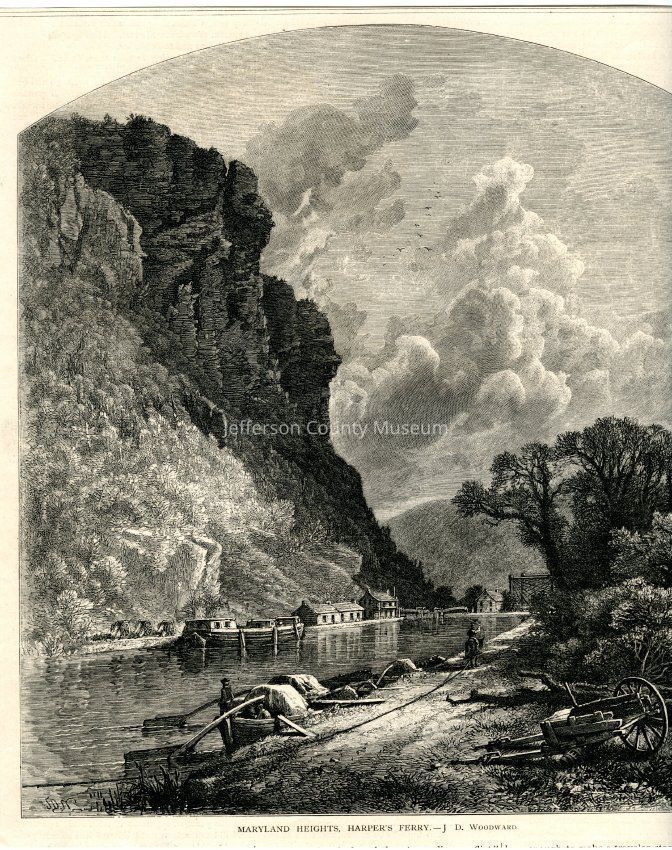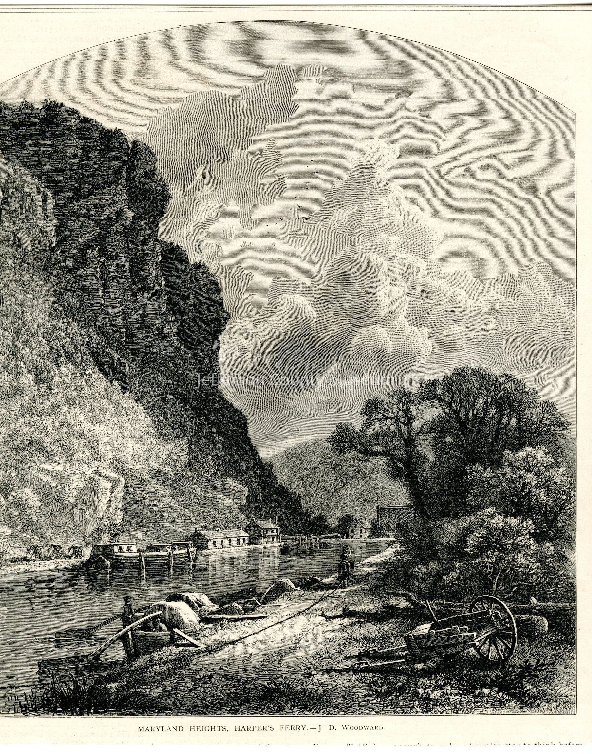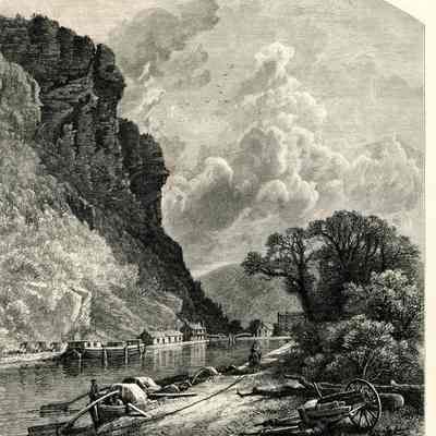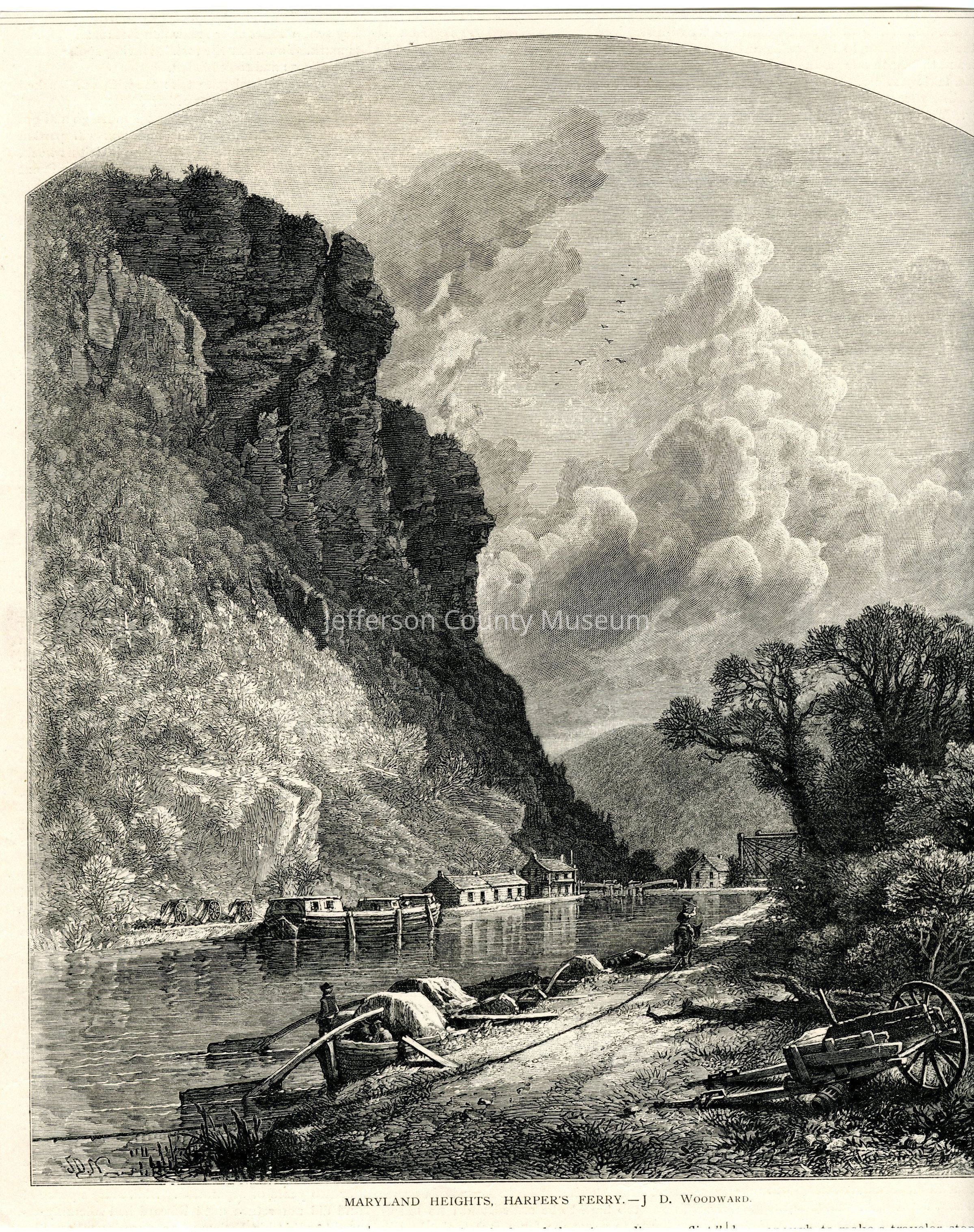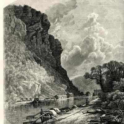 Possible wood engraving of a view among the river banks in Maryland Heights.
