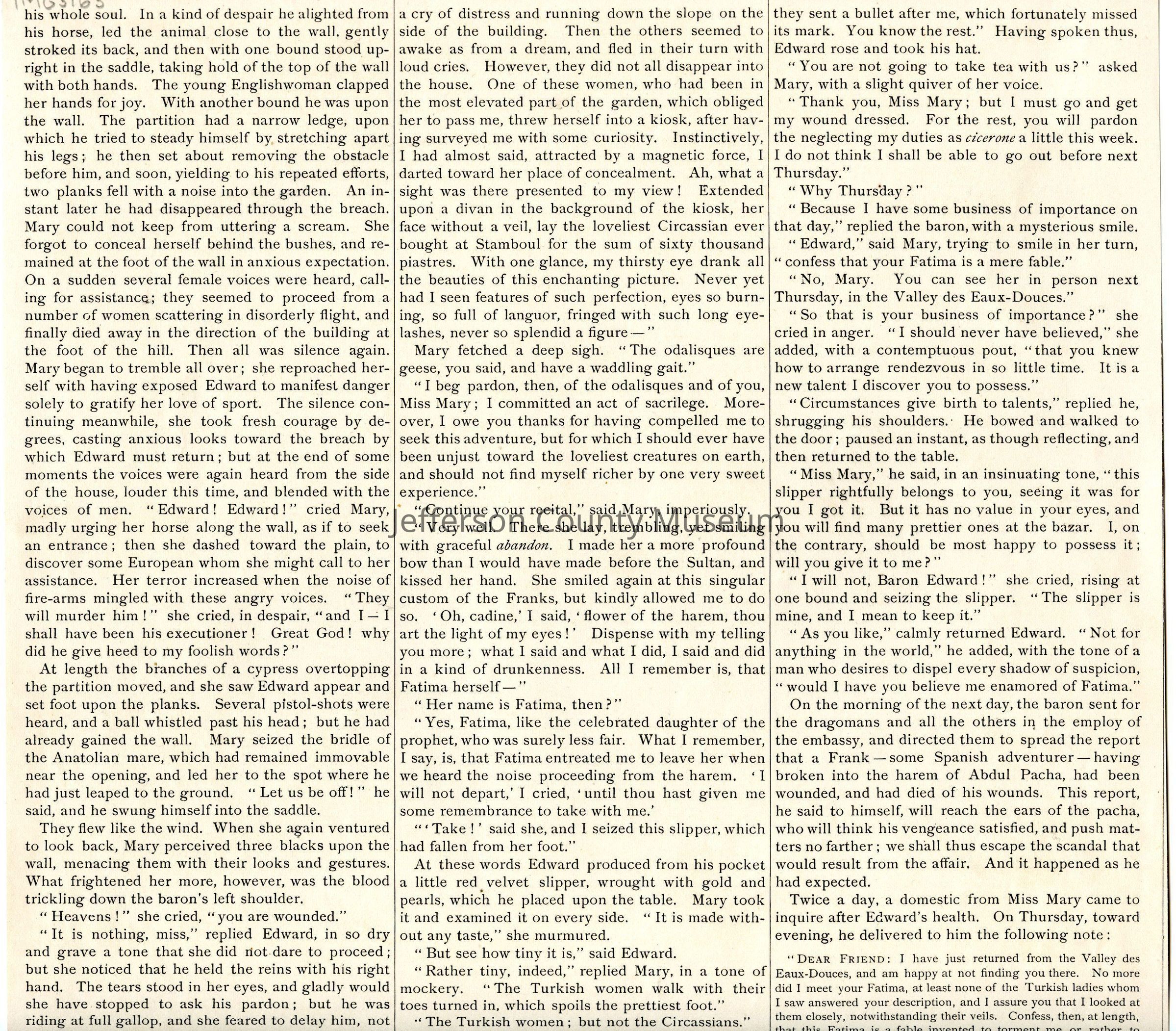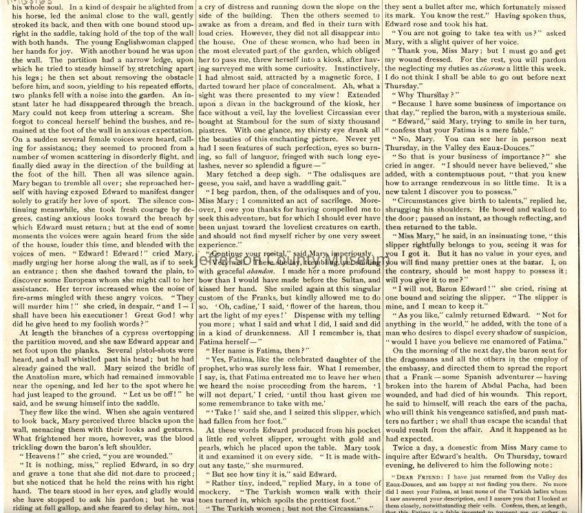Backside has printed text, possibly from a novel or a fictional article story. Source unknown.Acquisition
