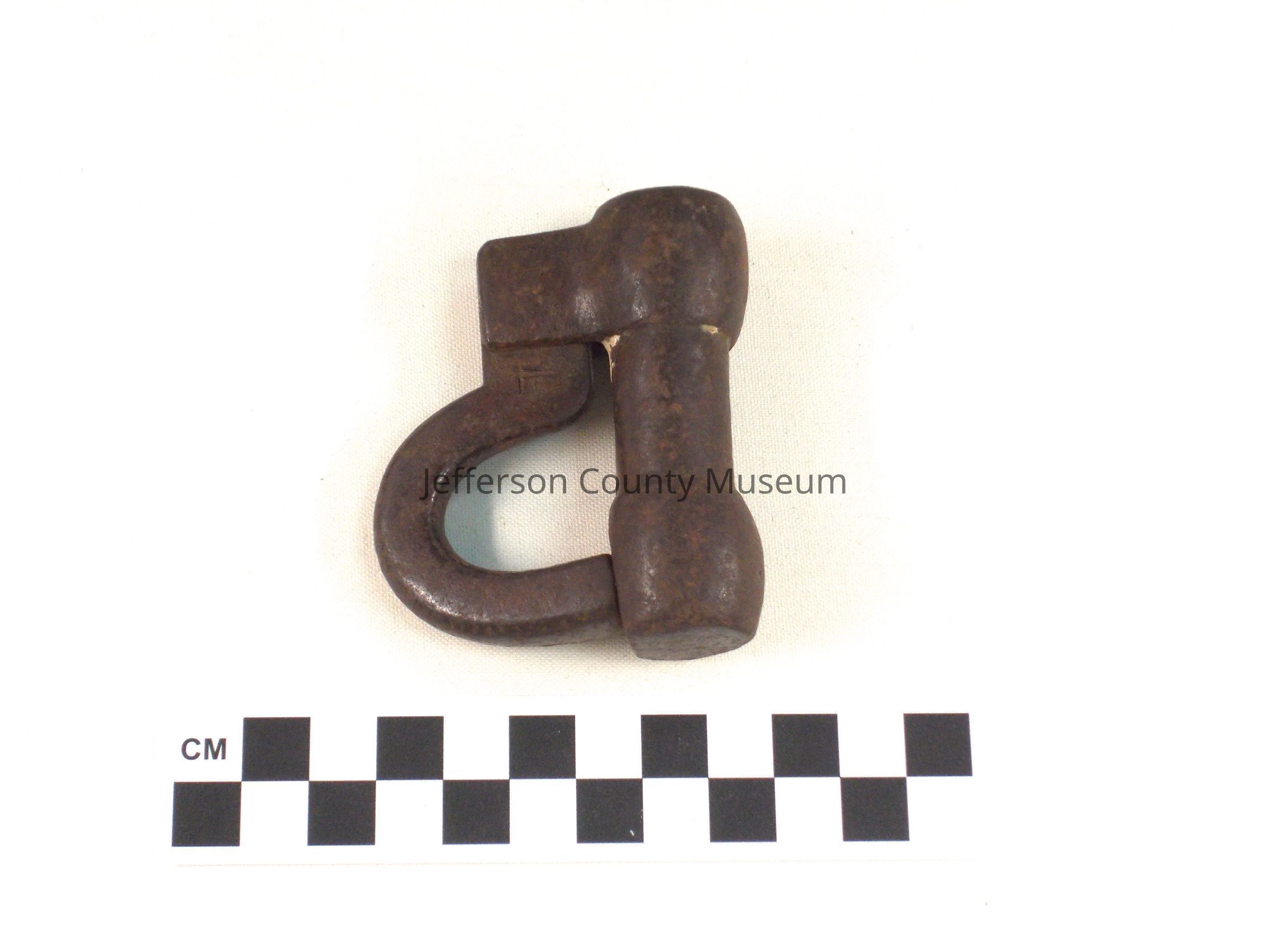 Iron screw lock without key. Has heavy U shaped locking bar.