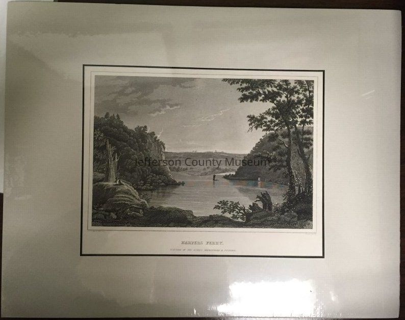 A steel engraving of a scenic view of Harpers Ferry along the Shenandoah and Potomac Rivers.